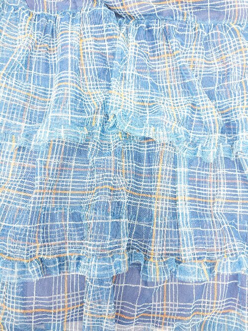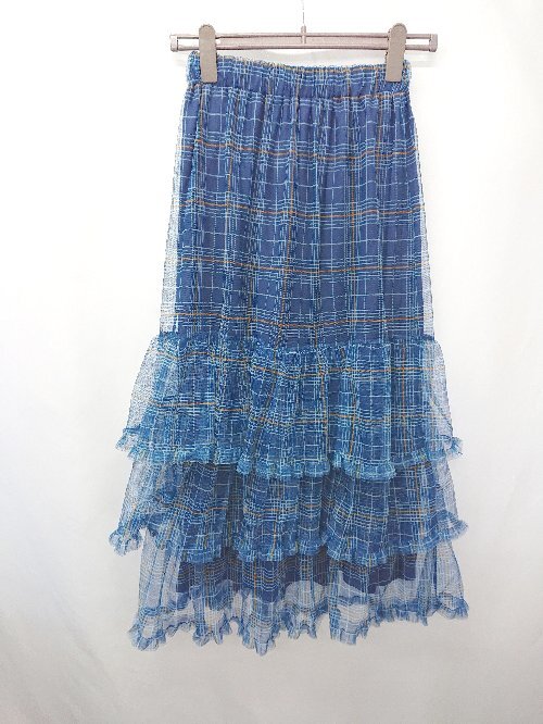 ◇ ⊂ CIAOPANIC チャオパニック チェック ティアード ロング フレア スカート サイズONE ブルー オレンジ系 レディース E