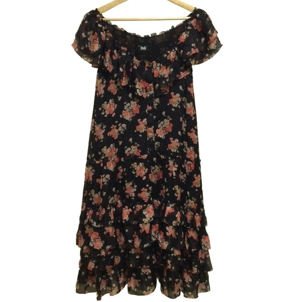 ディーアンドジー D&G サイズ36 S - 黒×オレンジ×ベージュ レディース 半袖/ひざ丈/花柄 ワンピース