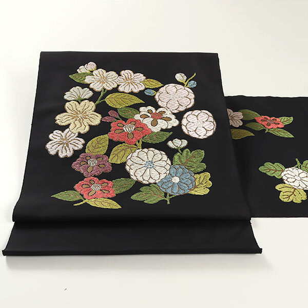 和遊館 即決ona4485 超逸品 西陣 錦工芸 唐織 九寸 名古屋帯 花卉文様 黒色 お仕立て付き
