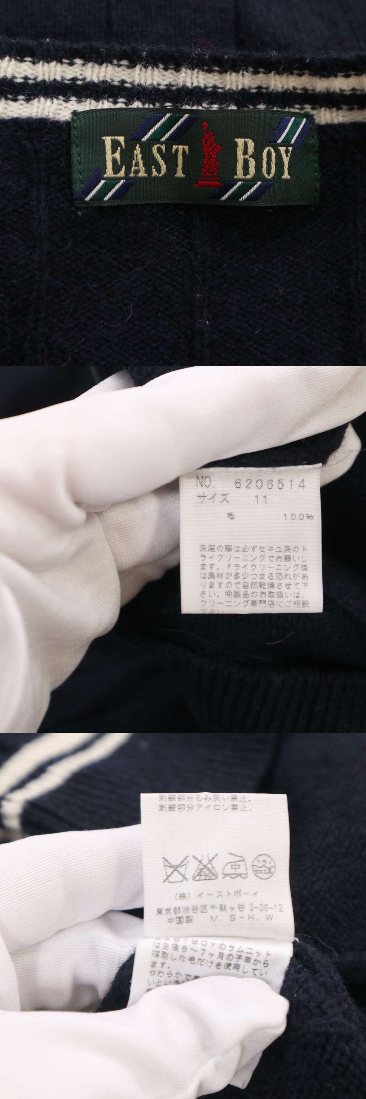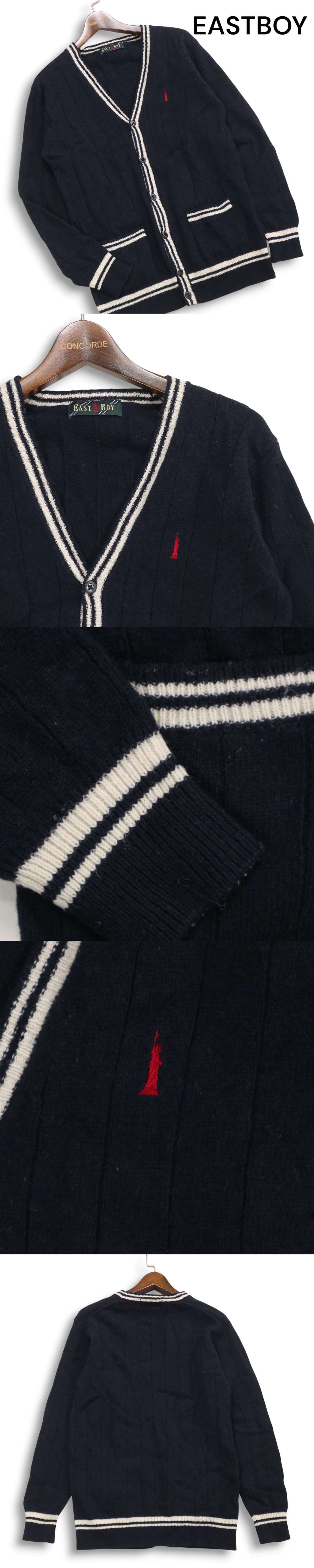 EASTBOY イーストボーイ 秋冬 刺繍★ ウール ケーブル スクール ニット カーディガン Sz.11 レディース 紺 学生 女子 通学