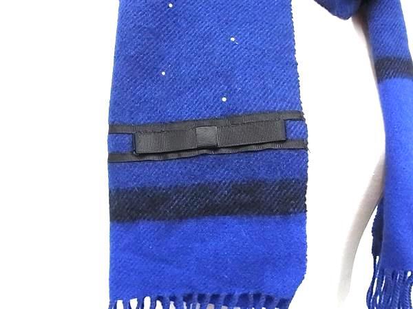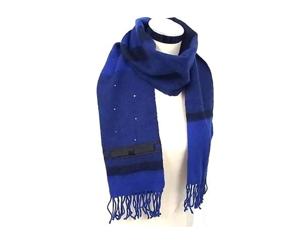 ■美品■ LANVIN ランバン フリンジ マフラー ストール ショール レディース 防寒具 ブルー系×ブラック系 DG1009