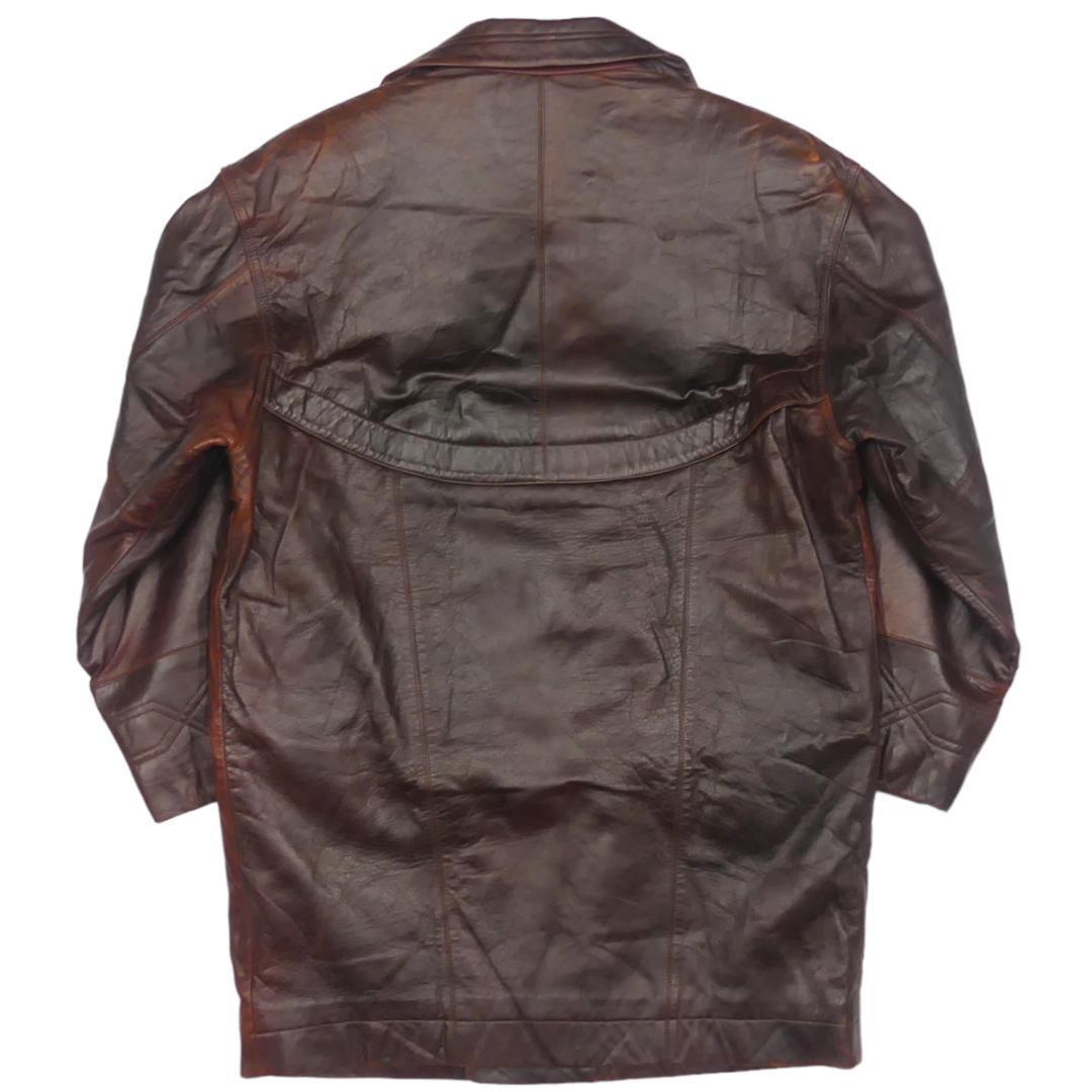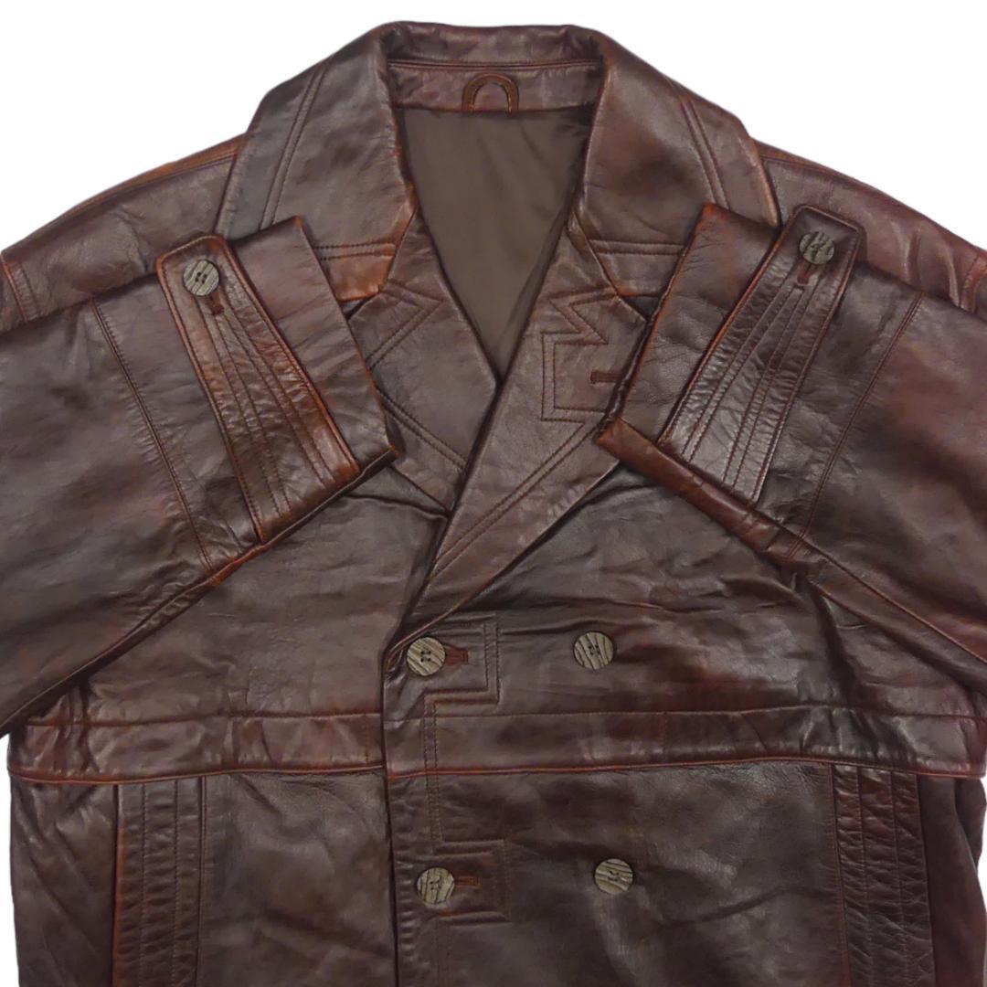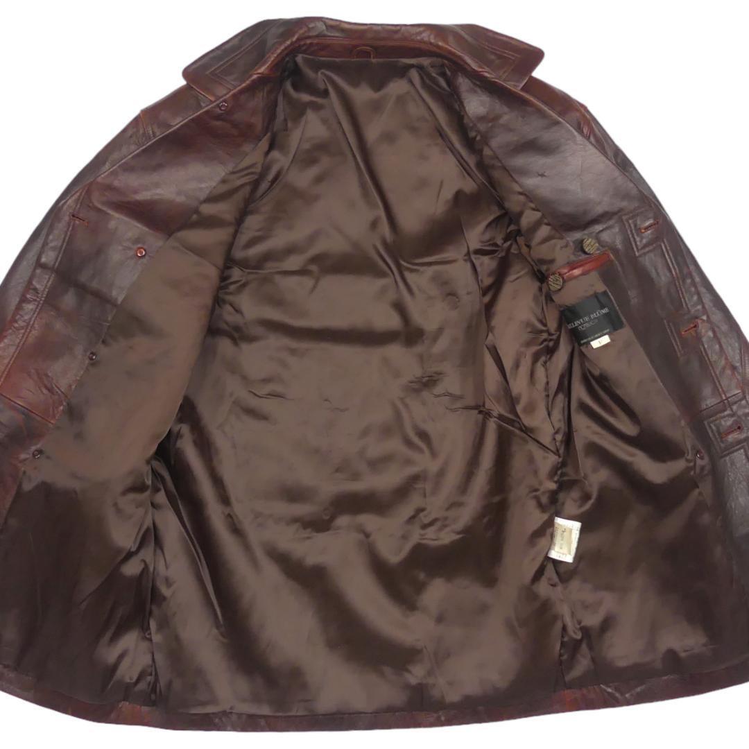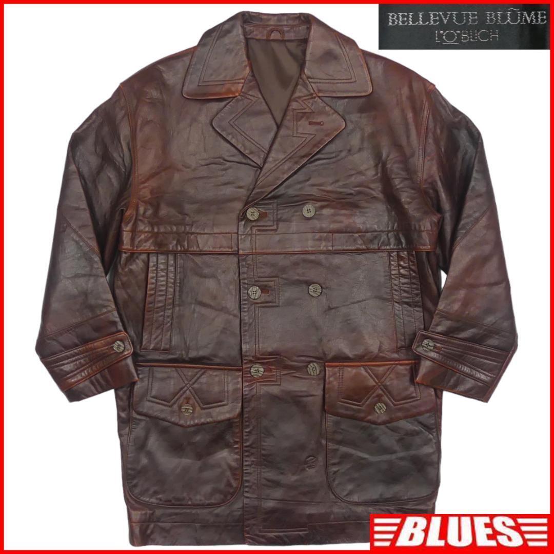 即決★BELLEVUE BLUME★メンズXL位 レザーPコート ベルバブローム 茶 本革 ジャケット 本皮 革ジャン ロングコート ハーフコート