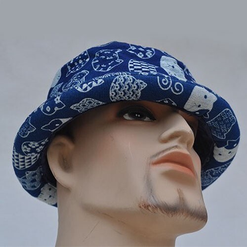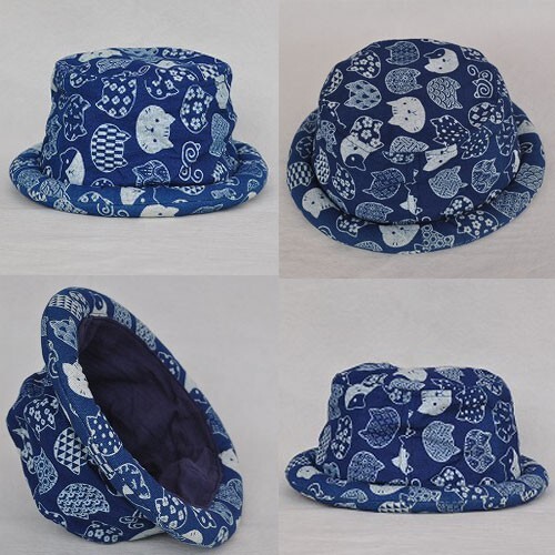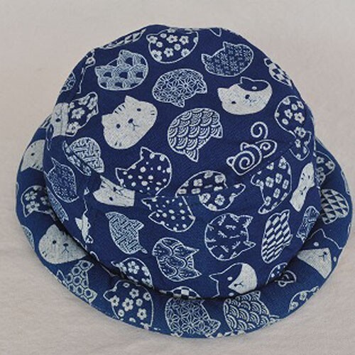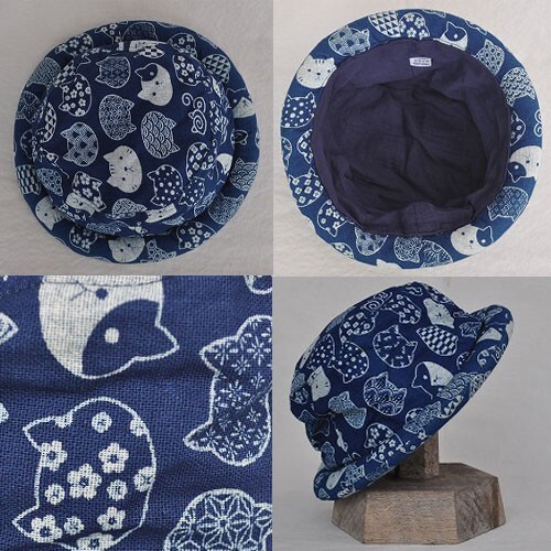 コットン素材 藍染ロールキャップ 藍&オフ CATFACE 新品 猫顔
