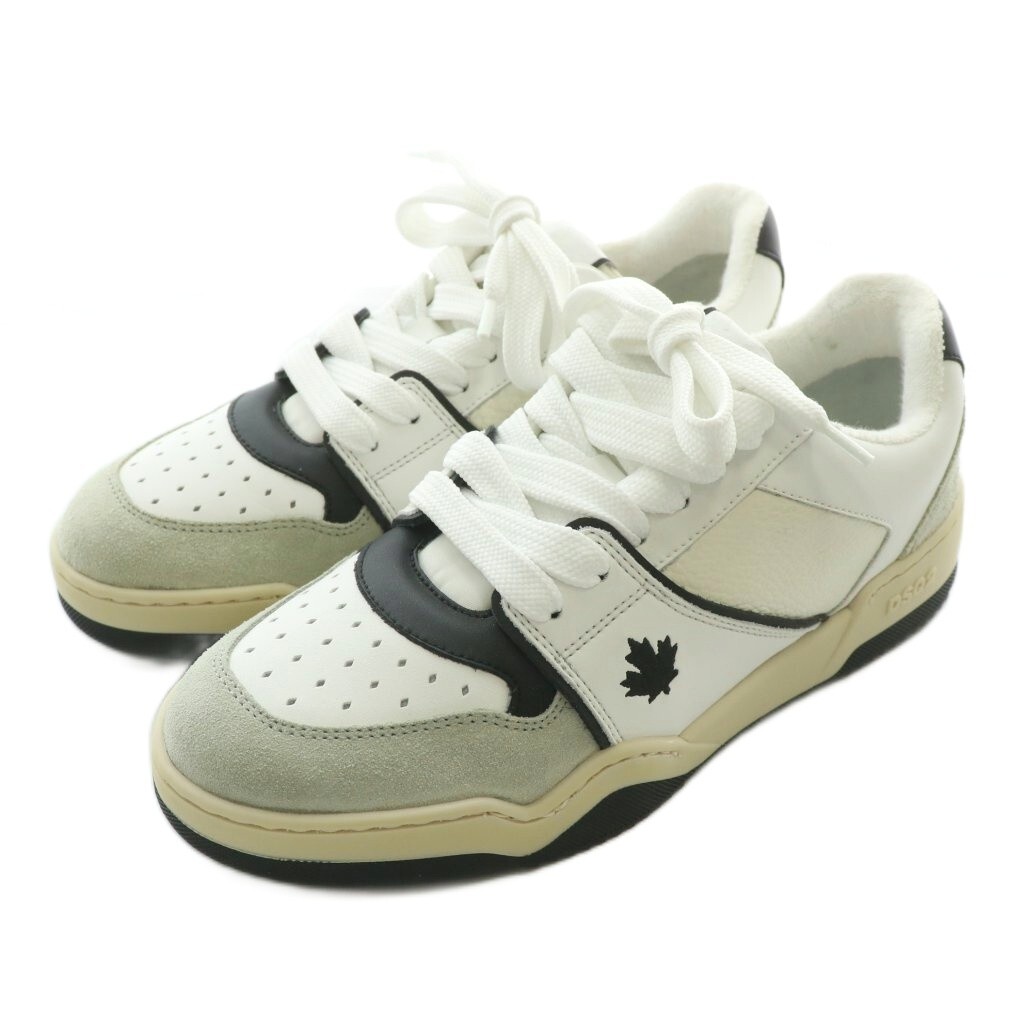 ディースクエアード DSQUARED2 スパイカー Spiker スニーカー レザー スエード ローカット ロゴ 刺繍 39 24.5cm 白 ホワイト グレー