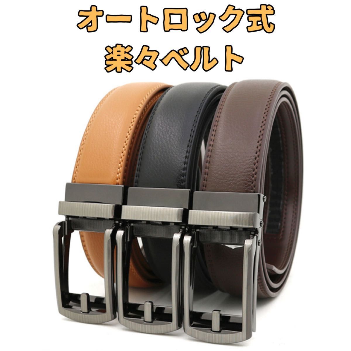 オートロック 穴なし レザー 革 ブラック 黒色 ブラウン 茶色 キャメル ビジネス スーツ ベルト