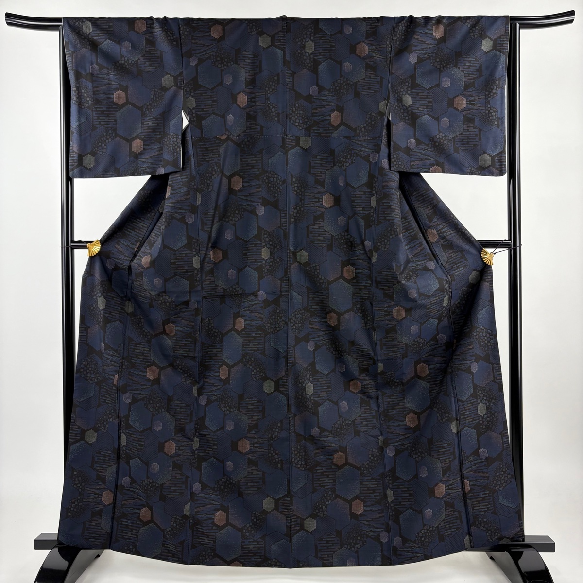 | 大島紬 美品 名品 証紙 純泥染 亀甲 ヱ霞 黒 袷 身丈163 裄丈65.5 M 正絹 【中古】 |
