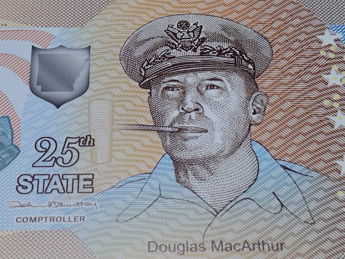 米国 アーカンソー州(25th) 50 State DOLLARS コレクター向けプラスティック製ファンタジー紙幣 コレクション向きのピン札   未使用 ダグラス・マッカーサー #00830