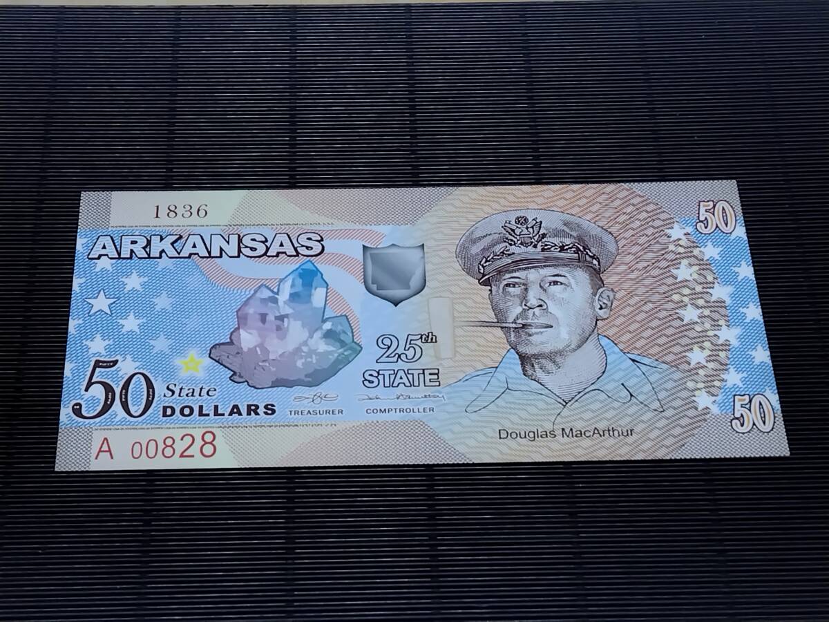 米国 アーカンソー州(25th) 50 State DOLLARS コレクター向けプラスティック製ファンタジー紙幣 未使用 ダグラス・マッカーサー #00830