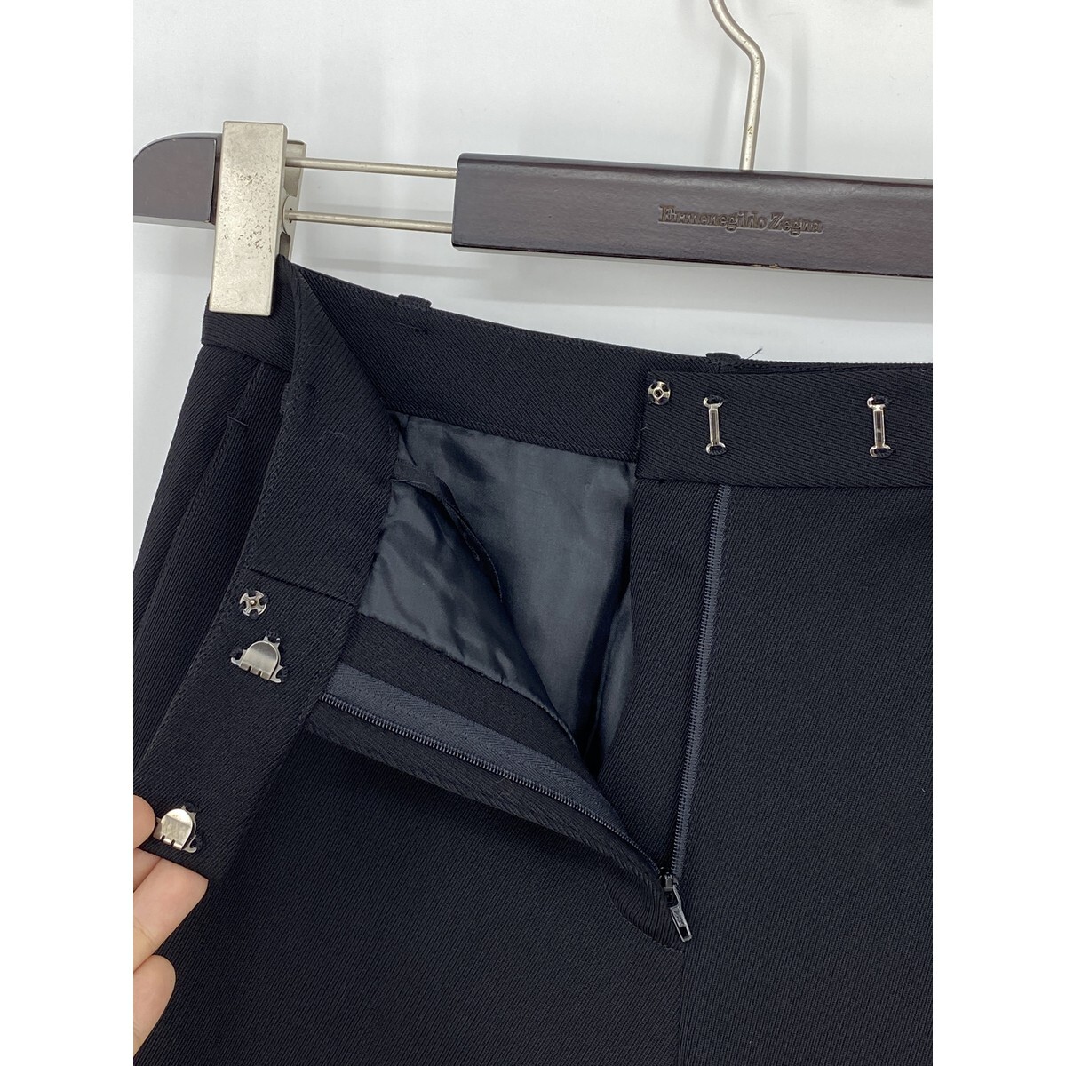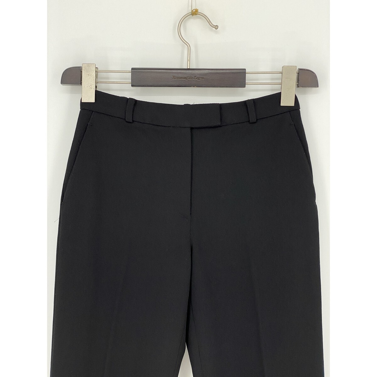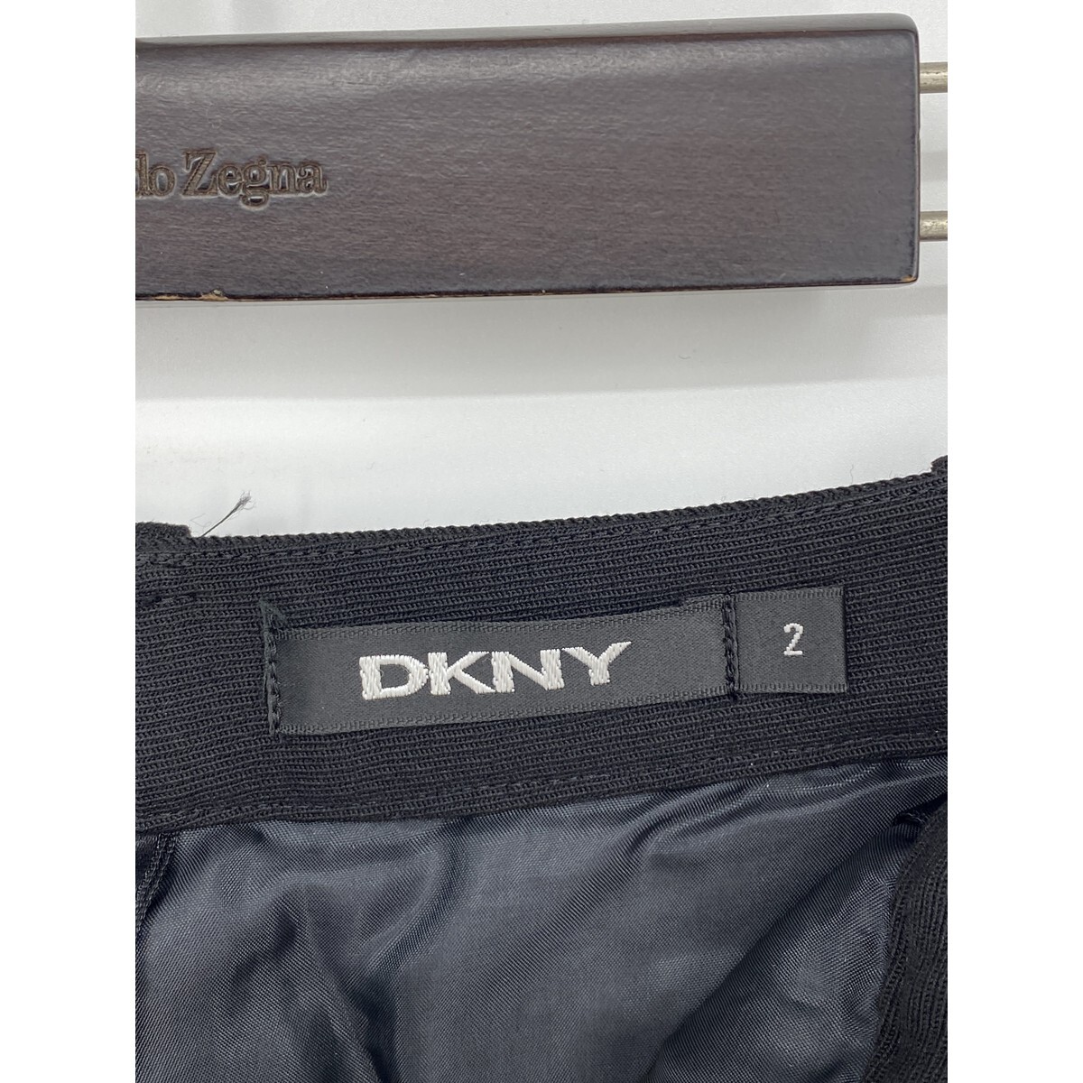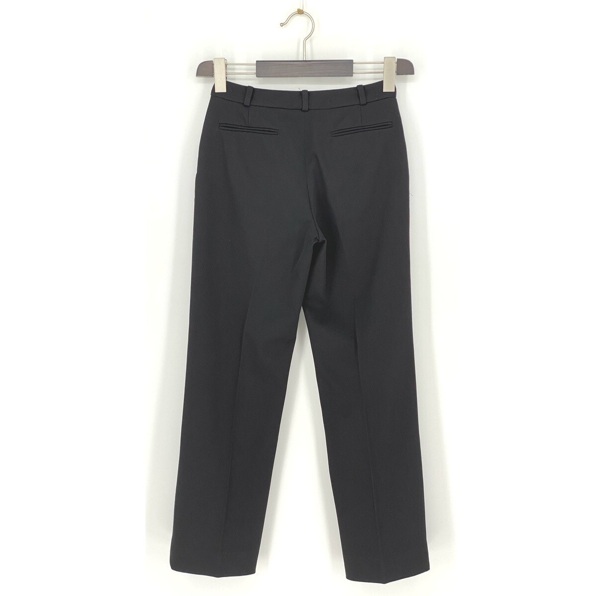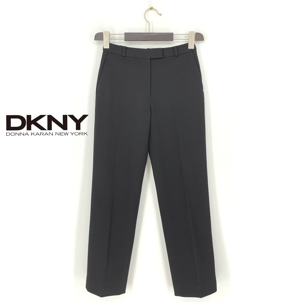 B0406/美品 DONNA KARAN ダナキャラン DKNY ウールストレッチ 無地 テーパード スラックス パンツ トラウザーズ2 S 黒 レディース スーツ用
