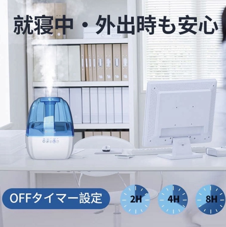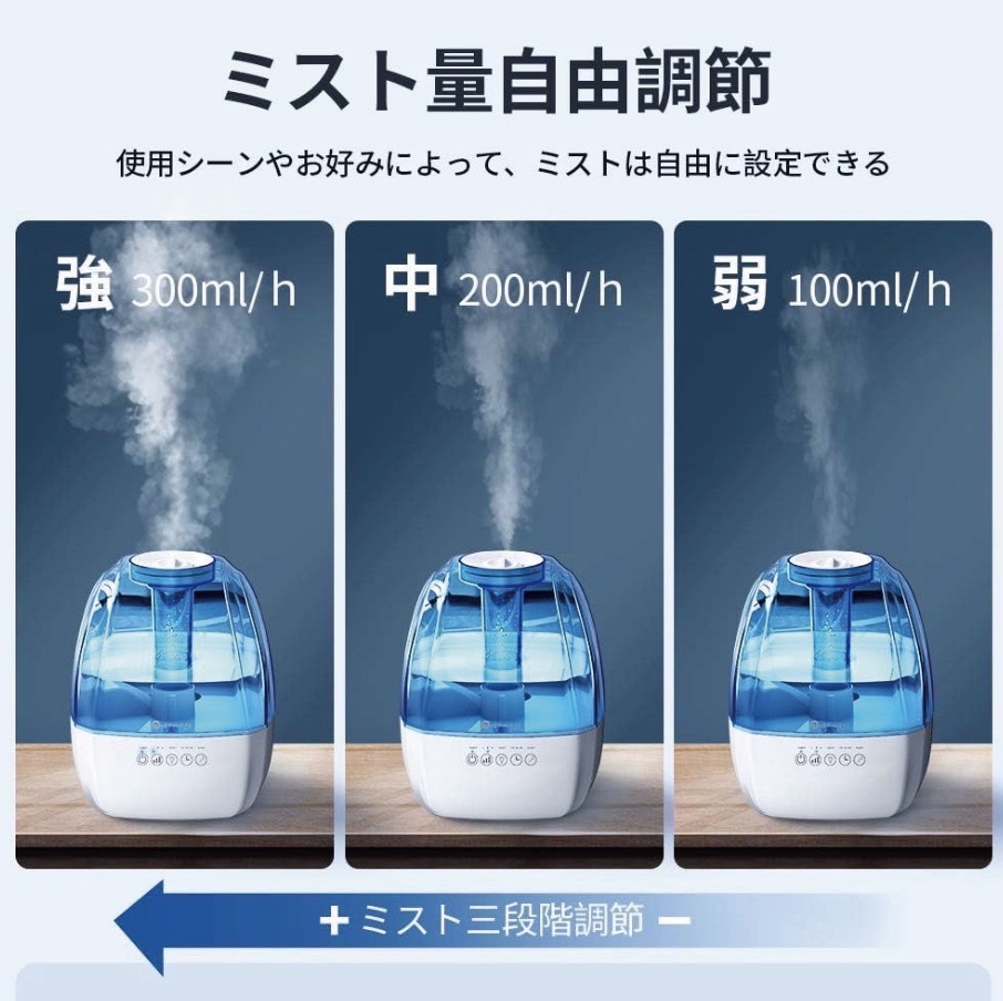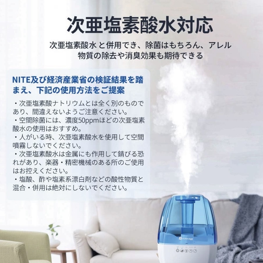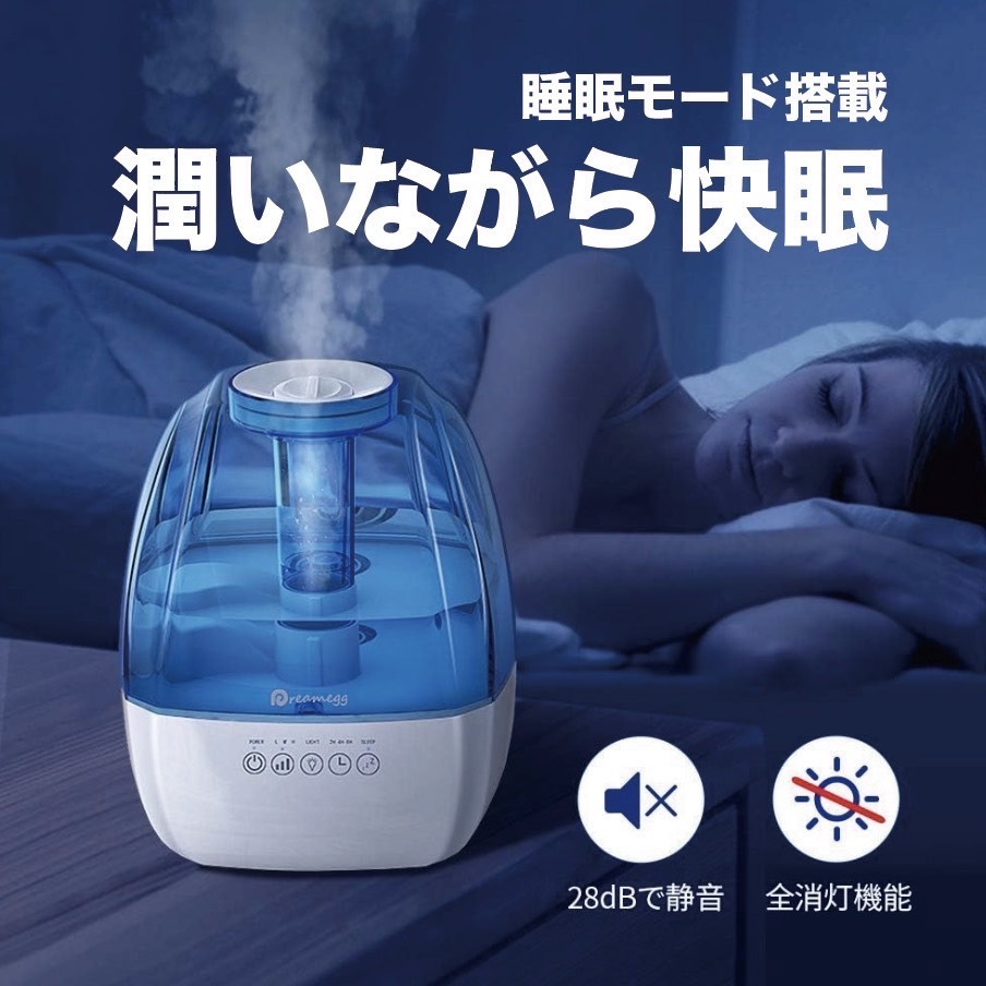 超音波加湿器 Dreamegg 大容量 加湿器 4.5L 超音波式 次亜塩素酸水対応 40時間連続加湿 静音 タイマー付き