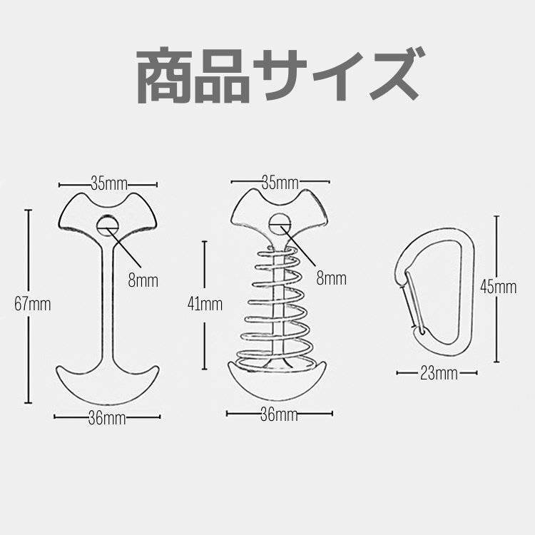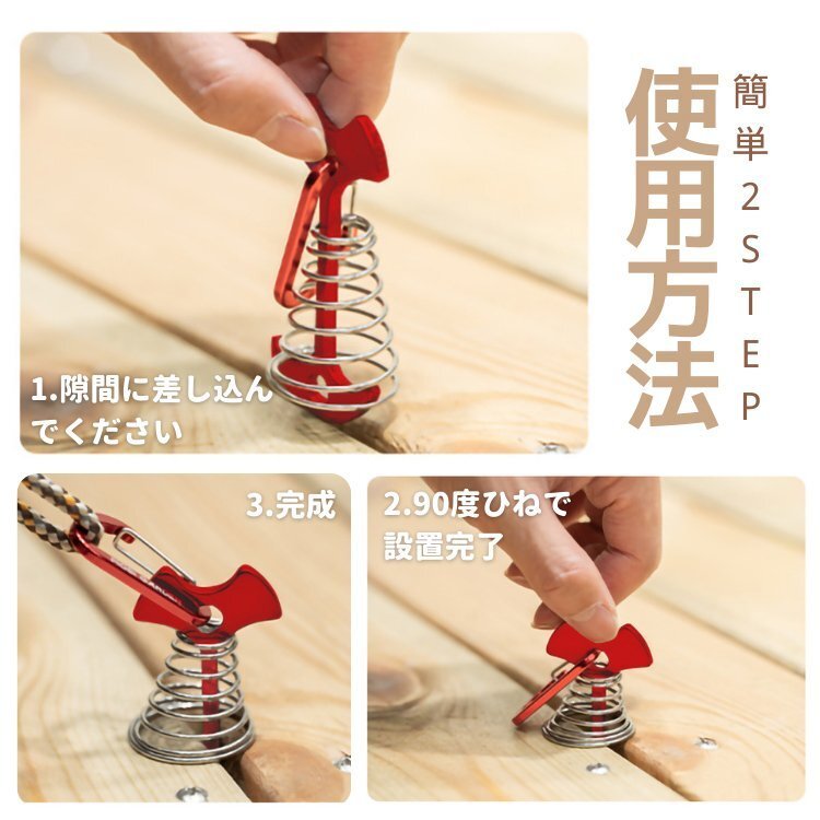 ◆アンカーペグ+カラビナ+スプリング 3点 5セット分 アルミ 軽量 金具 桟橋 ウッドデッキでのテントやタープの設営に キャンプ アウトドア 留め具 魚骨ペグ 簡単設置 隙間3mm以上 HIKMKRAF05S