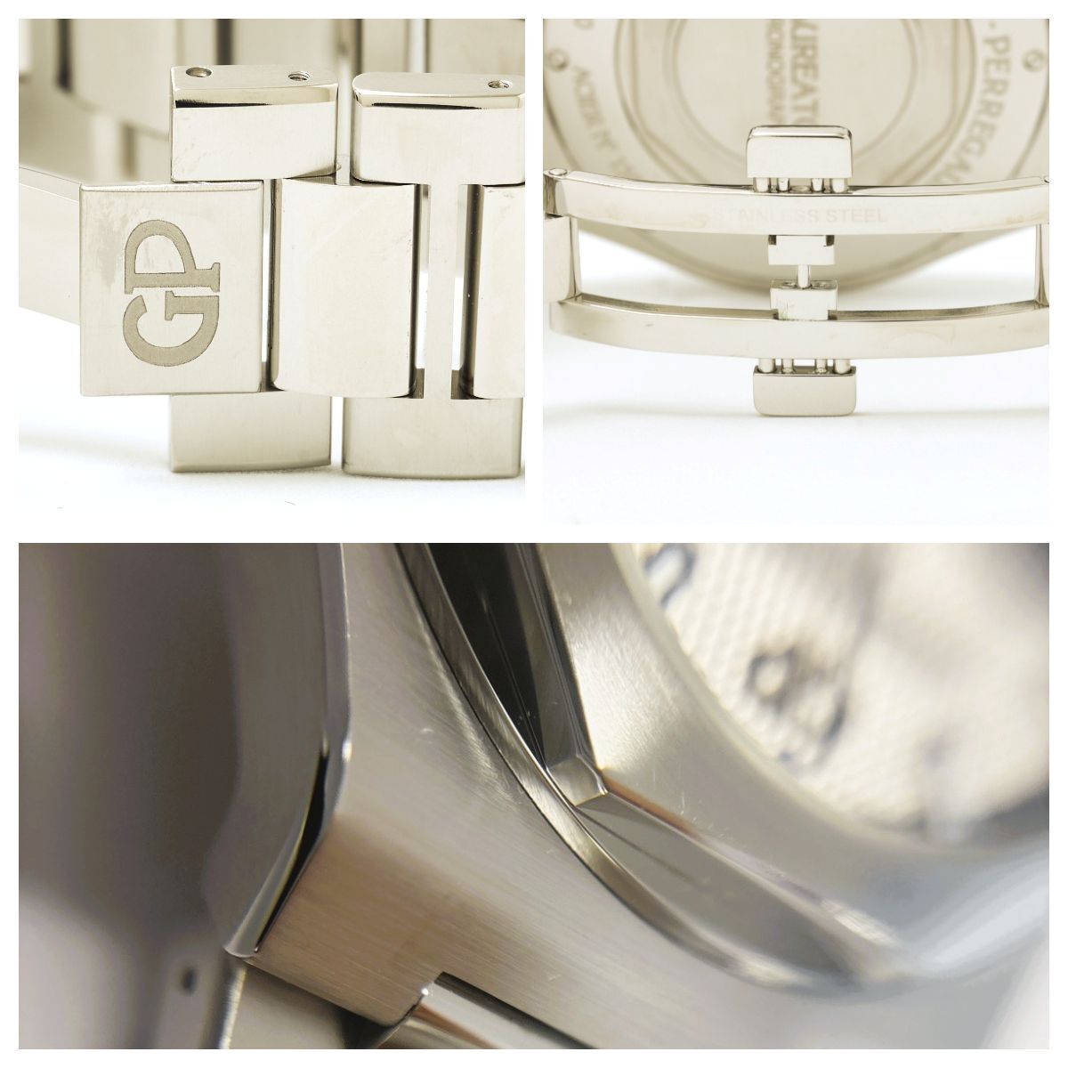 変形防止のため研磨残有り、ラグ付近擦れ跡、裏蓋傷有り