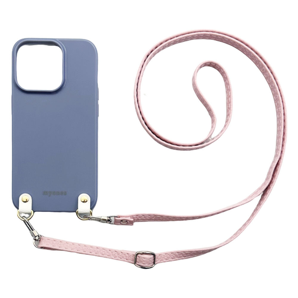 iPhone13 Mini アイフォン13ミニ(くすみブルー/ピンク)PUレザー ソフトケース スマホショルダー 肩掛け 首かけ 斜めがけ かわいい 韓国