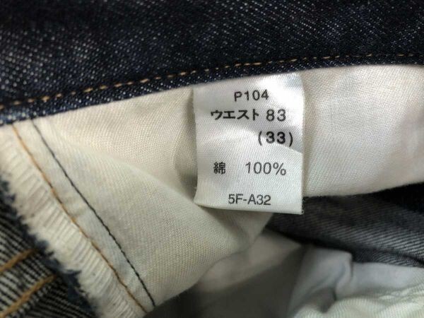 サイズは33でウエスト82cm、股上29cm、股下75cm です。
