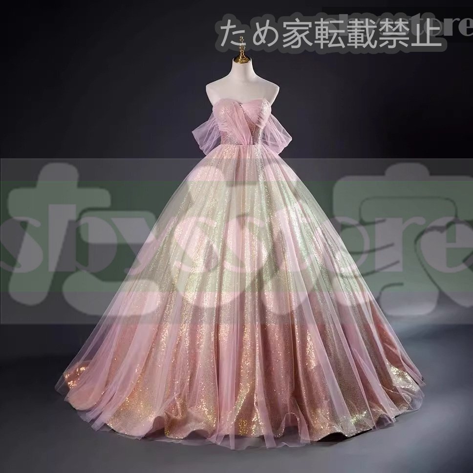 大値下げ カラーチュール ウェディングドレス ドレス イブニングドレス パフォーマンスステージ ロングドレス マーメイドビーズ ビストッ