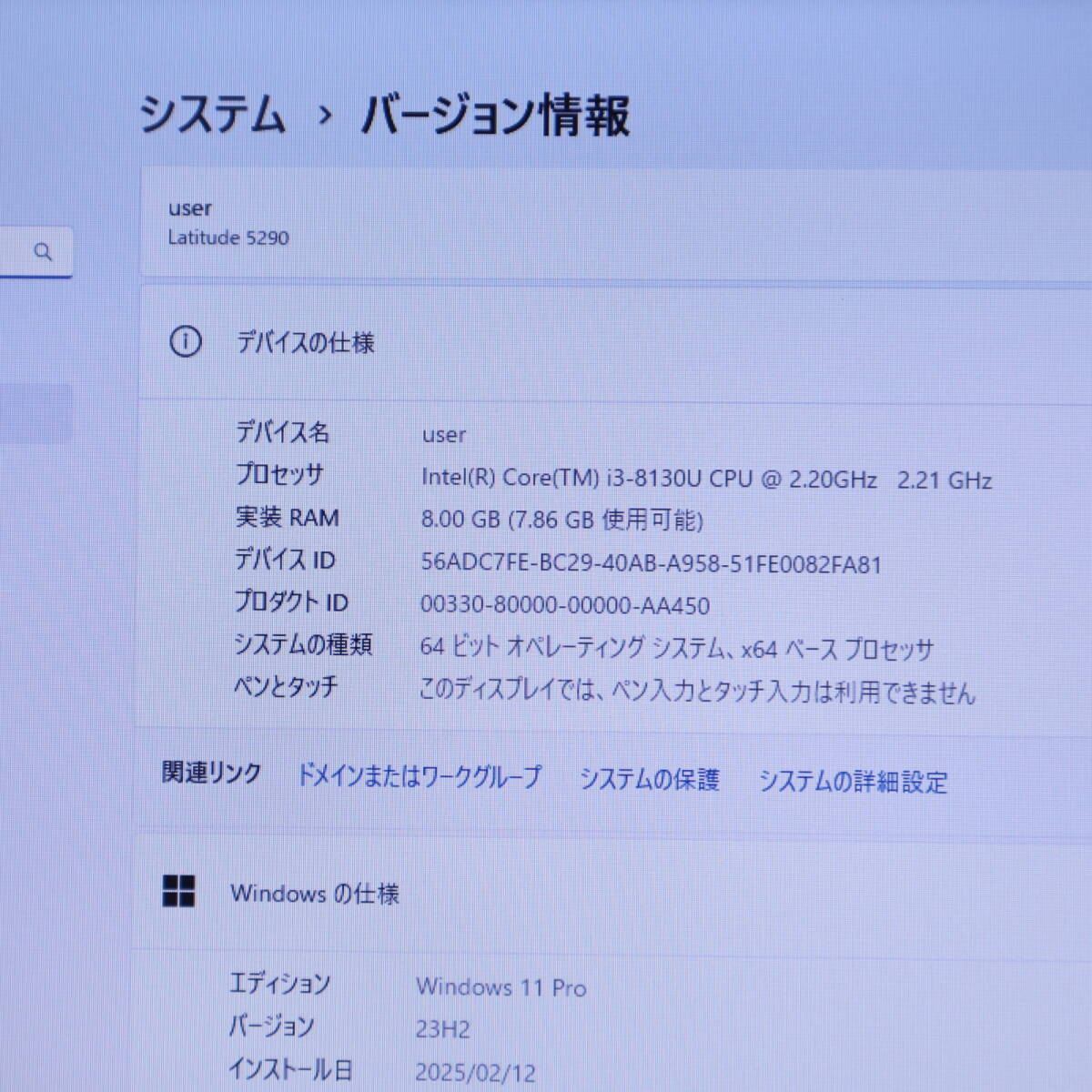 ★超美品 高性能8世代i3!新品SSD256GB メモリ8GB★LATITUDE5290 Core i3-8130U Webカメラ TypeC Win11 MS Office2019 H&B★P91550