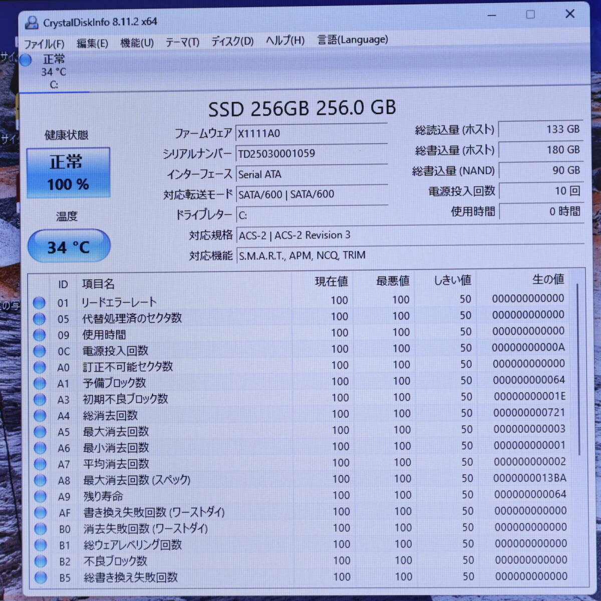 ◎ストレージにはHDDよりも速度が早く快適にPCを使用できる SSD を使用しています