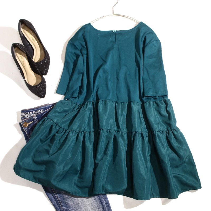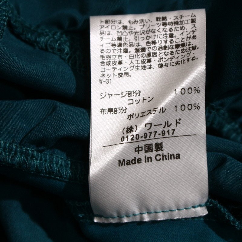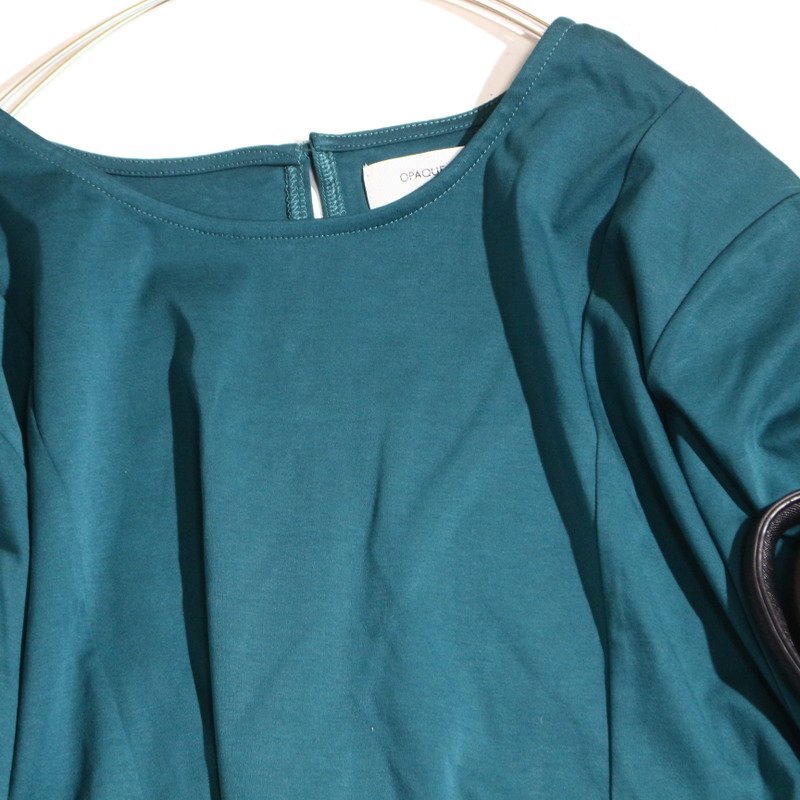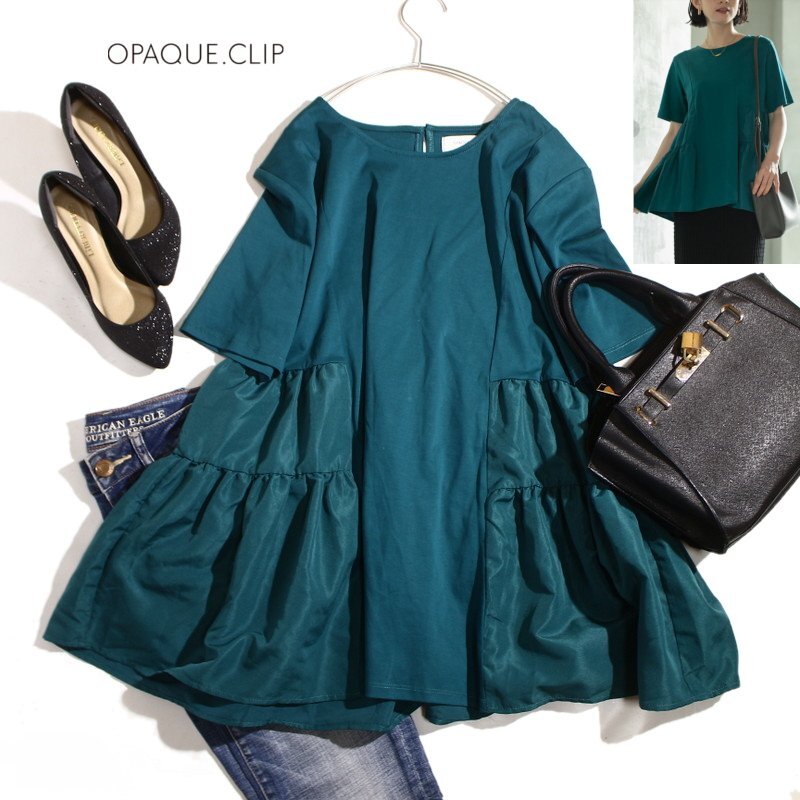 美品 オペ―ク ドットクリップ OPAQUE.CLIP 株) ワールド 夏 Aライン ティアード カットソー シルク調コットン 洗濯機洗い可 LL グリーン