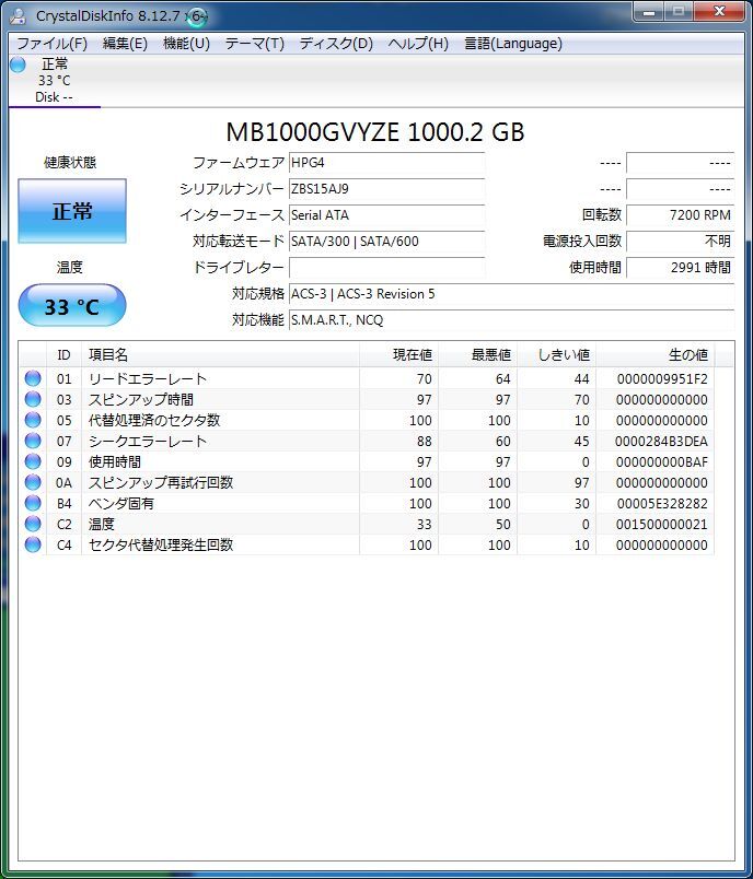 Seatools, DLG, HDD-SCANで初期化・全セクタ検査済み・不良セクタはありません。
