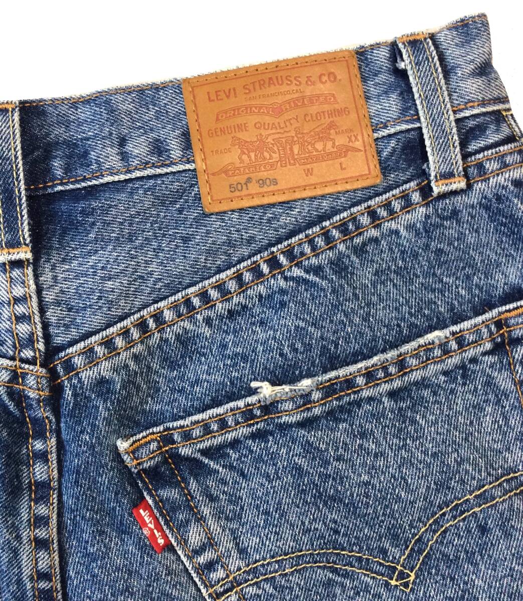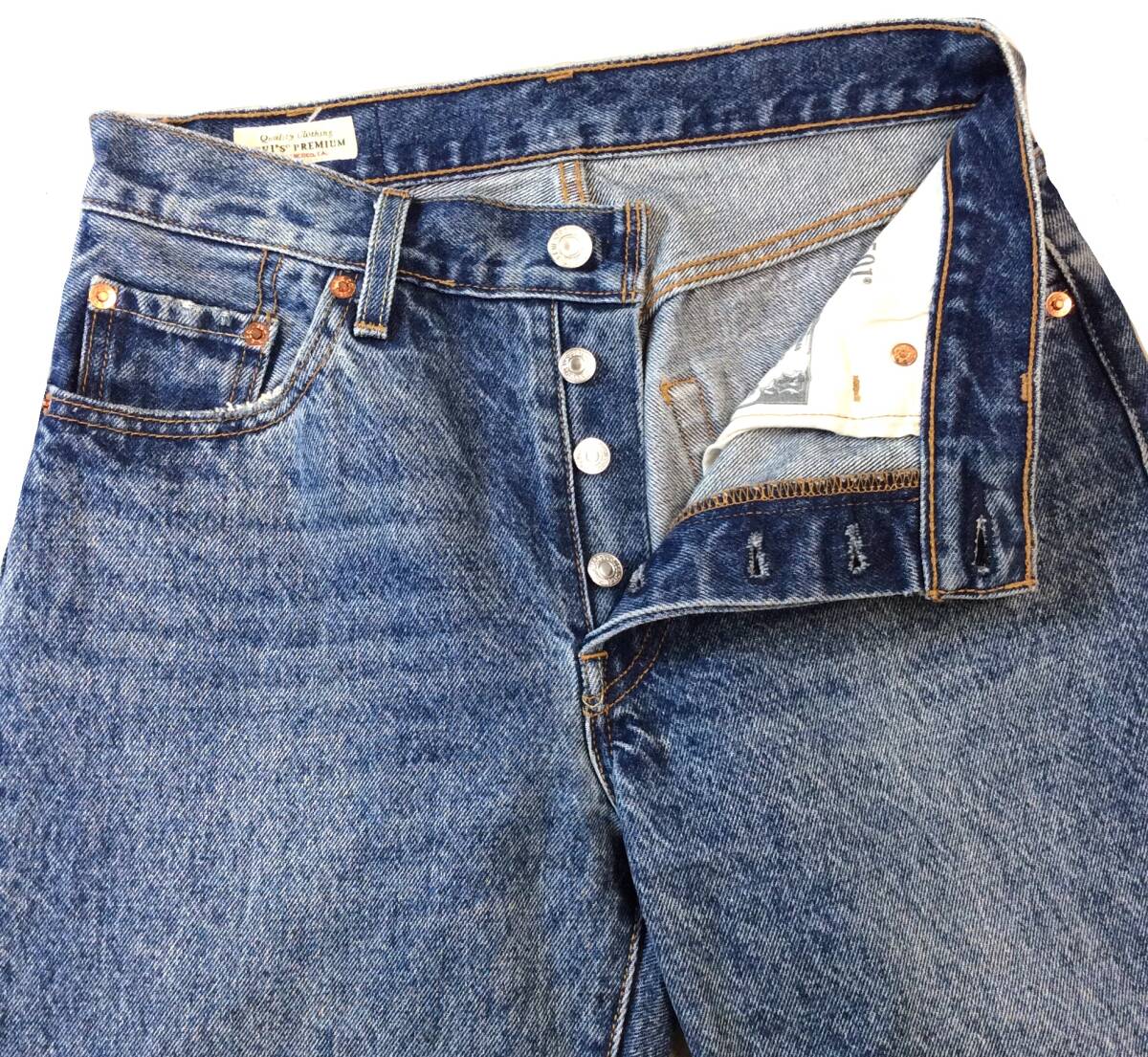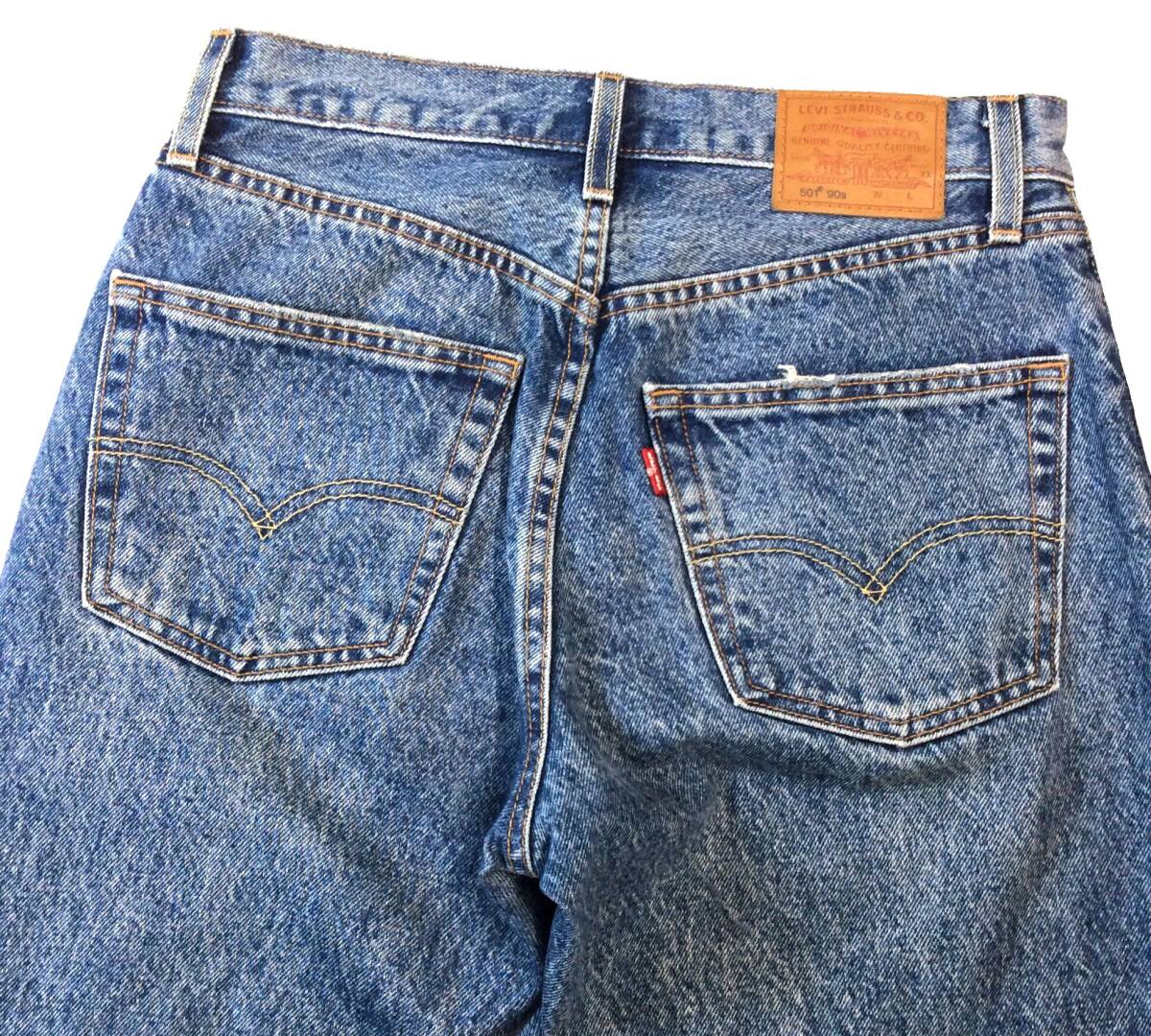 LEVI'S リーバイス PREMIUM プレミアム 501 90s デニム パンツ ジーンズ ケミカルウォッシュ系 ネイビー W24 レディース向け