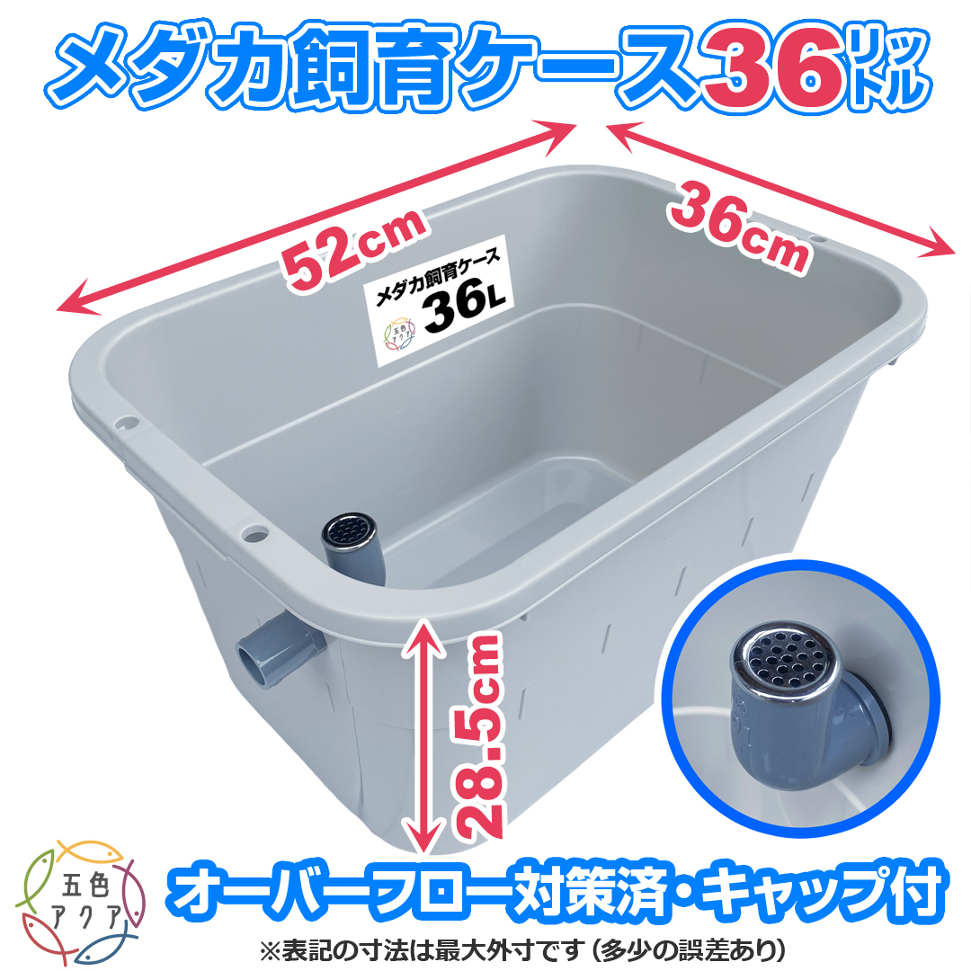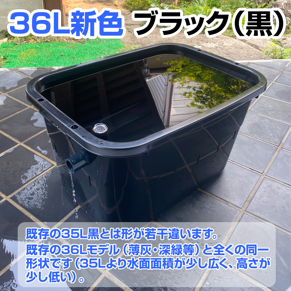 メダカ飼育容器36㍑ 黒・薄灰・深緑・水色選択可x1個 オーバーフロー対策済【送料別】メダカ飼育ケース タライ【五色アクア】09