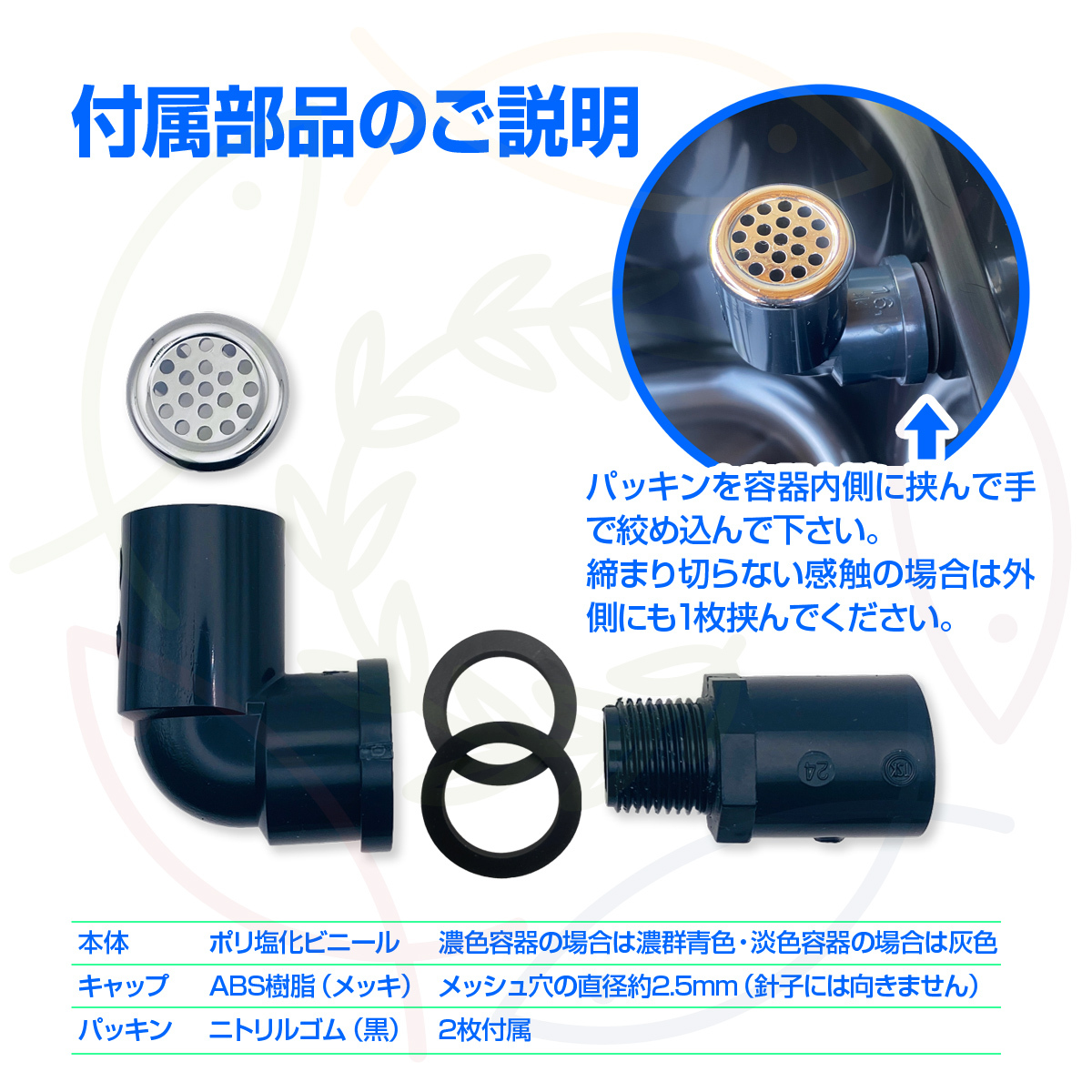 また、樹脂製キャップで生体の流出を防いでいます(水抜き穴の直径約2.5mmですので針子には向きません)。