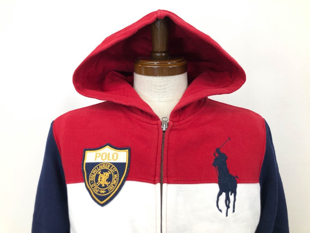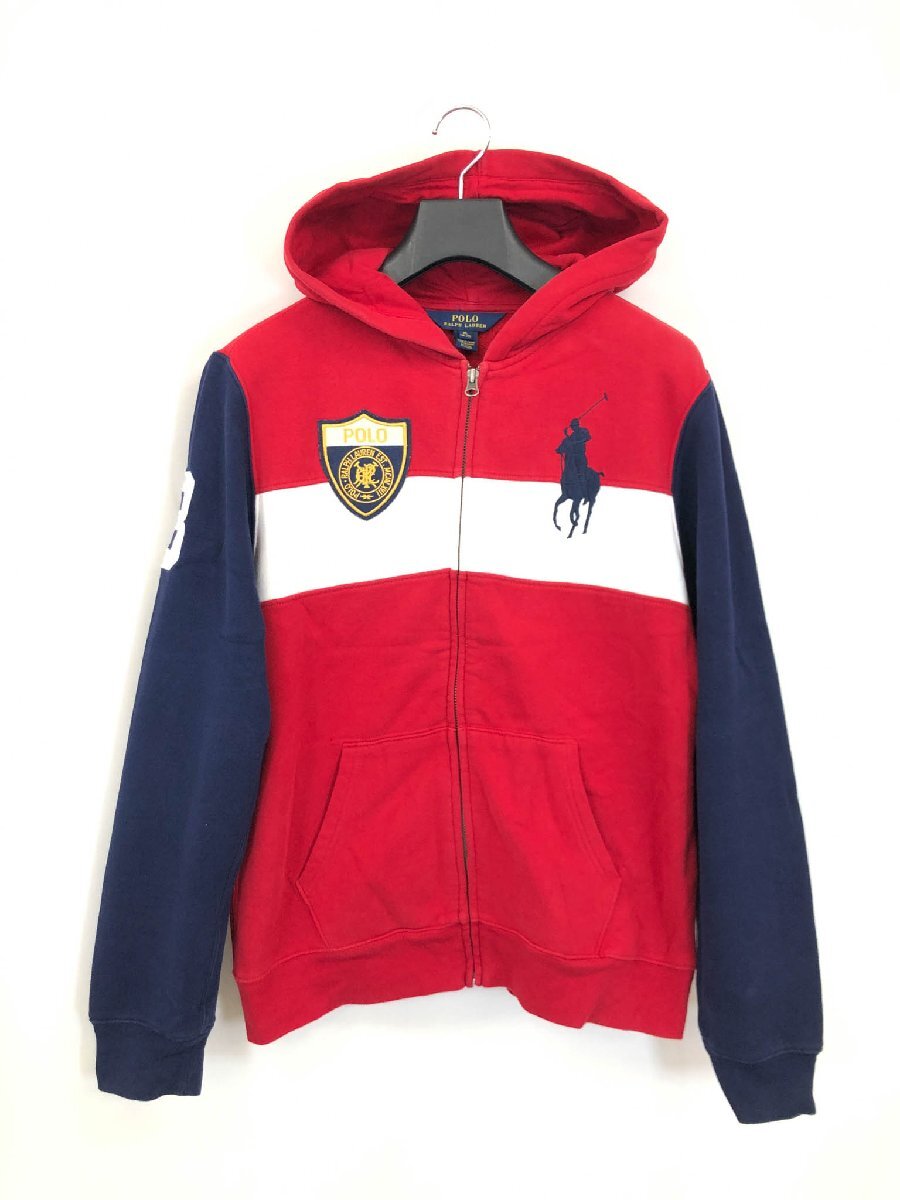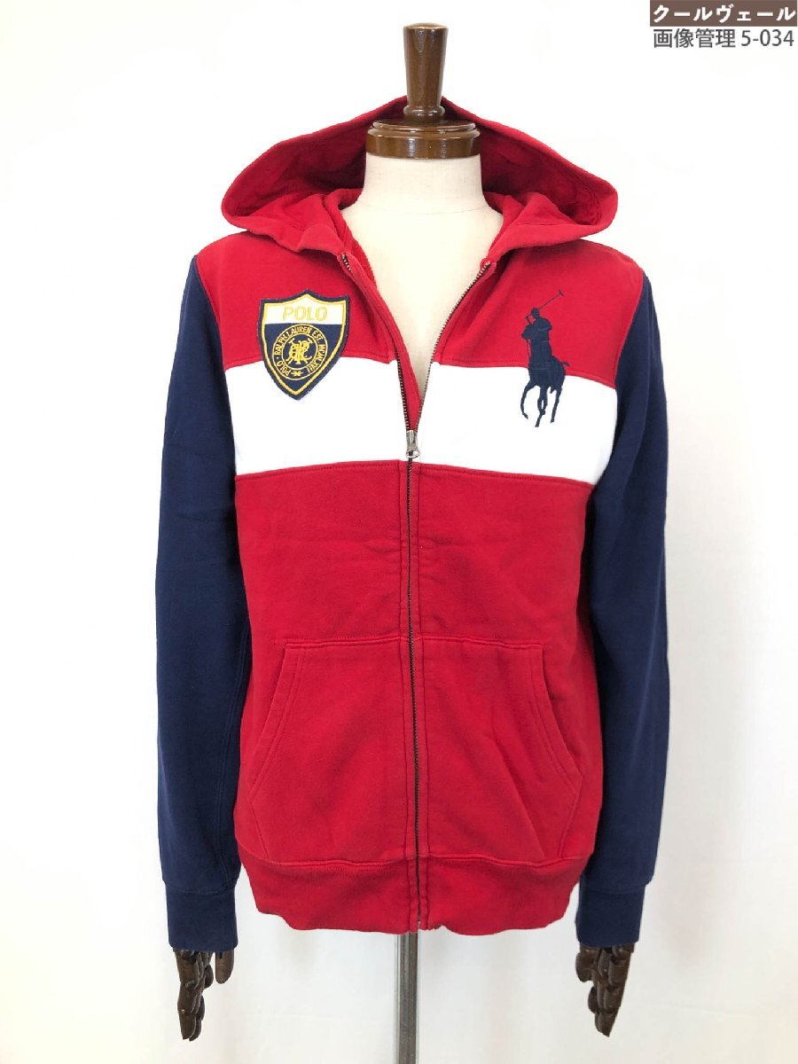 美品【ポロラルフローレン】323507854 ビッグポニー刺繍 裏起毛 パーカー スウェット (メンズ) XL(18-20) ネイビー×レッド系 ◇17MT6278◇