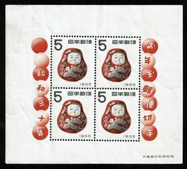 1955年 お年玉切手 加賀起き上がり 小型シート 未使用