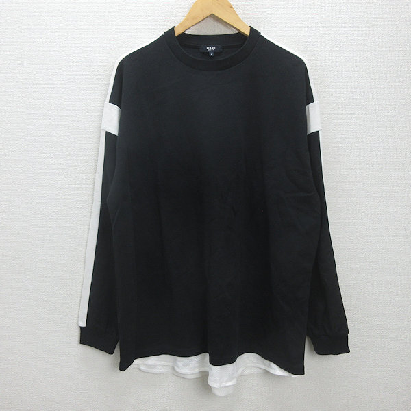 G■ビームス/BEAMS HEART フェイクレイヤー ラインBIGプルオーバー/42-14-0225-147【L】白黒/men's/80【中古】■