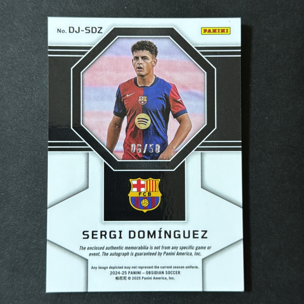 【50枚限定】Sergi Dominguez セルジ・ドミンゲス Panini Obsidian 2024-2025 /50 RC Jersey ジャージ Auto サイン 直筆 FC Barcelona