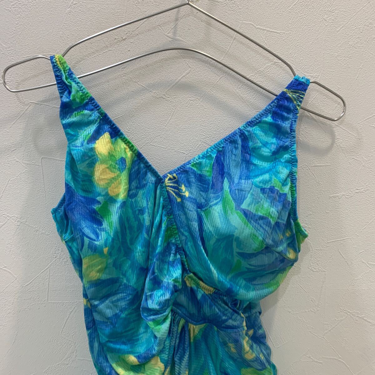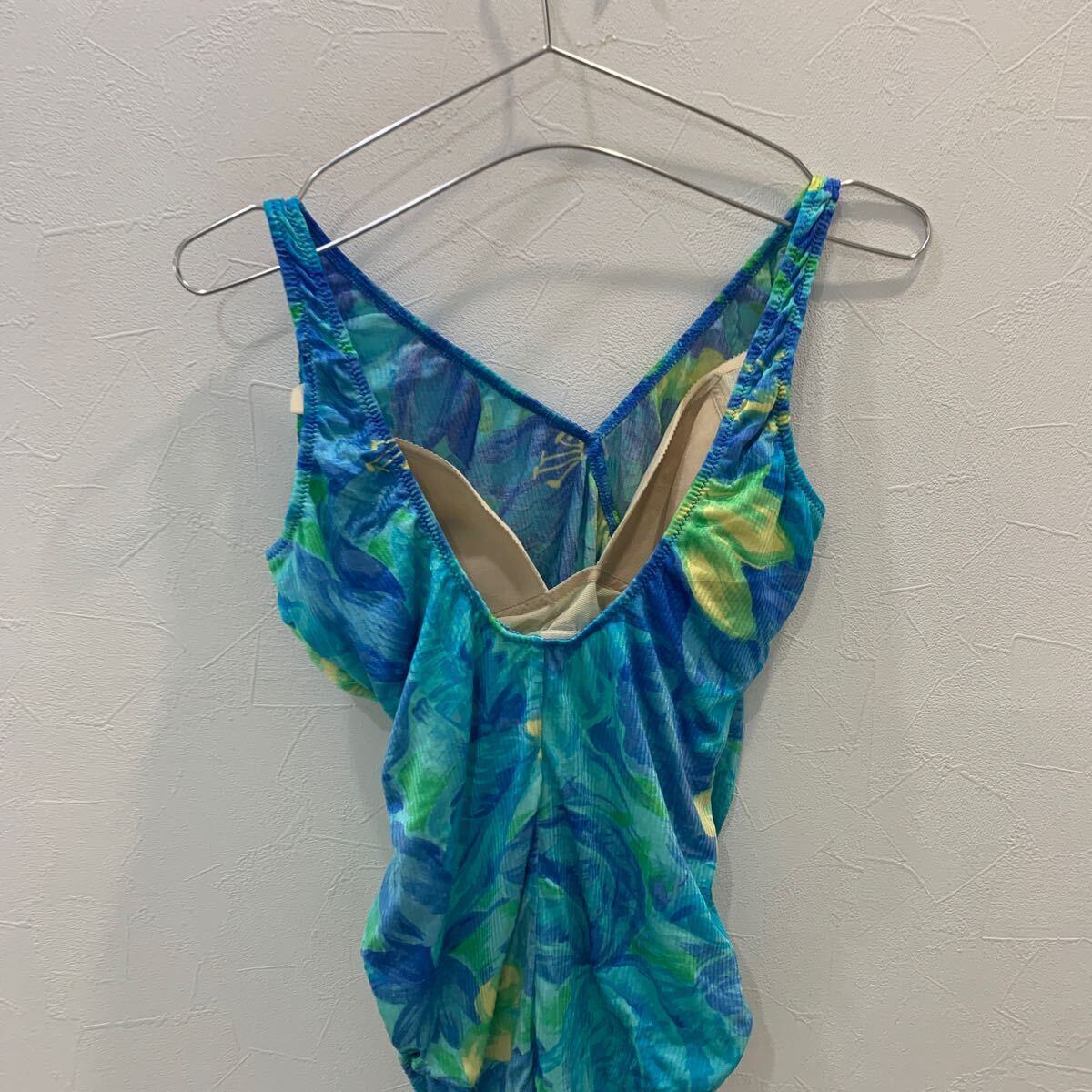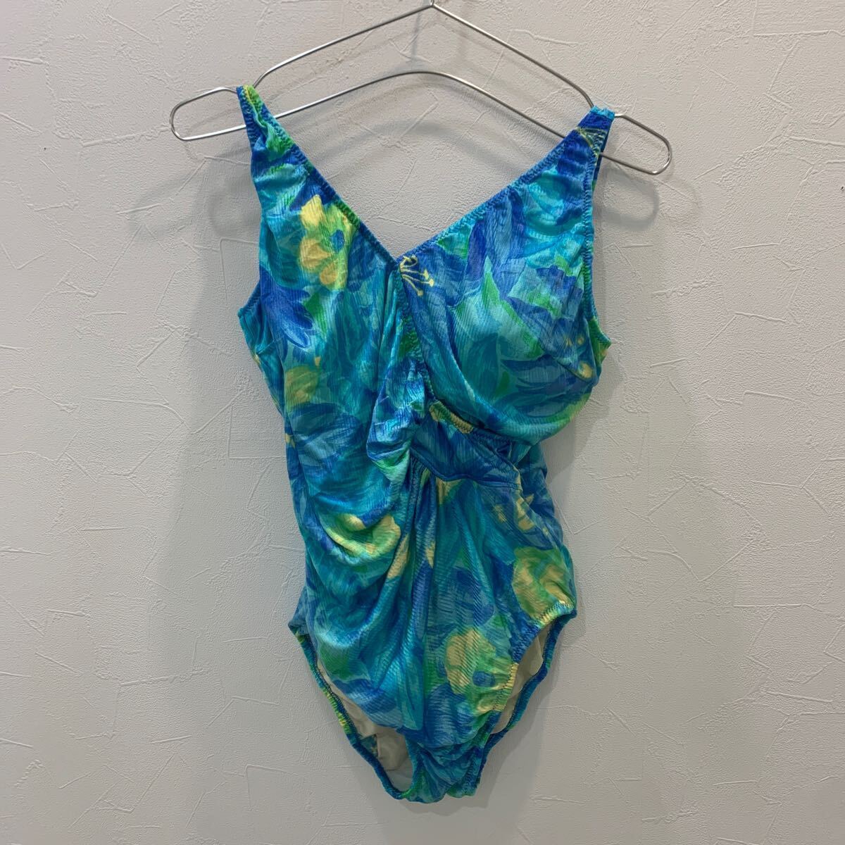 J325 スイムウェア 水着 ハイレグ 花柄 レトロ ブルー レディース L
