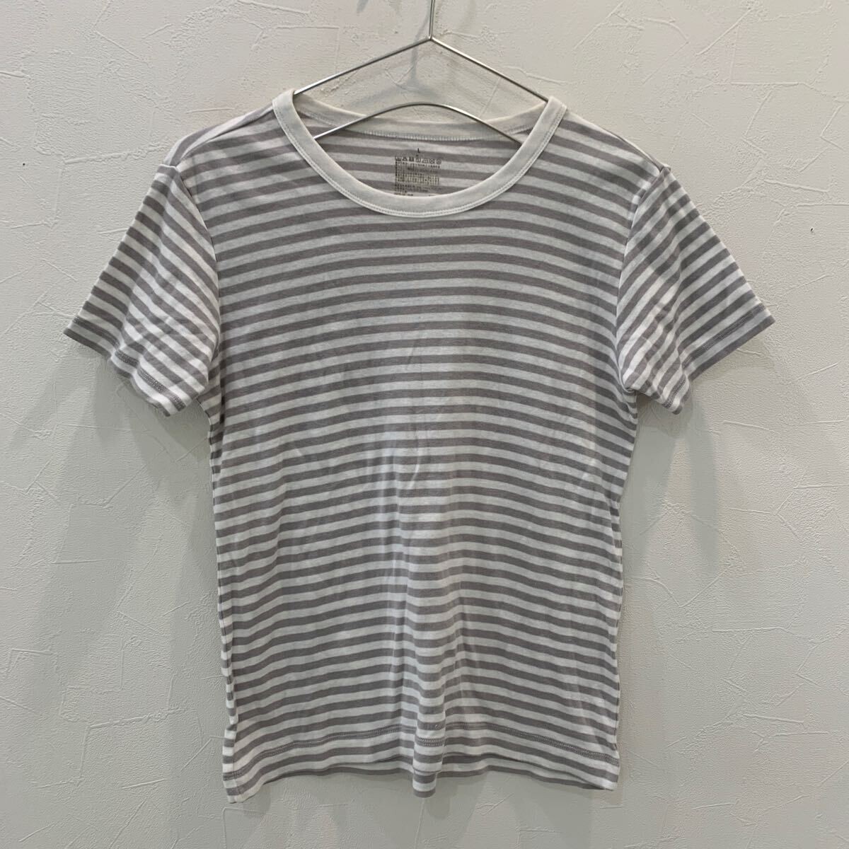 IN15 無印良品 半袖ボーダーTシャツ グレー レディース L