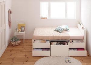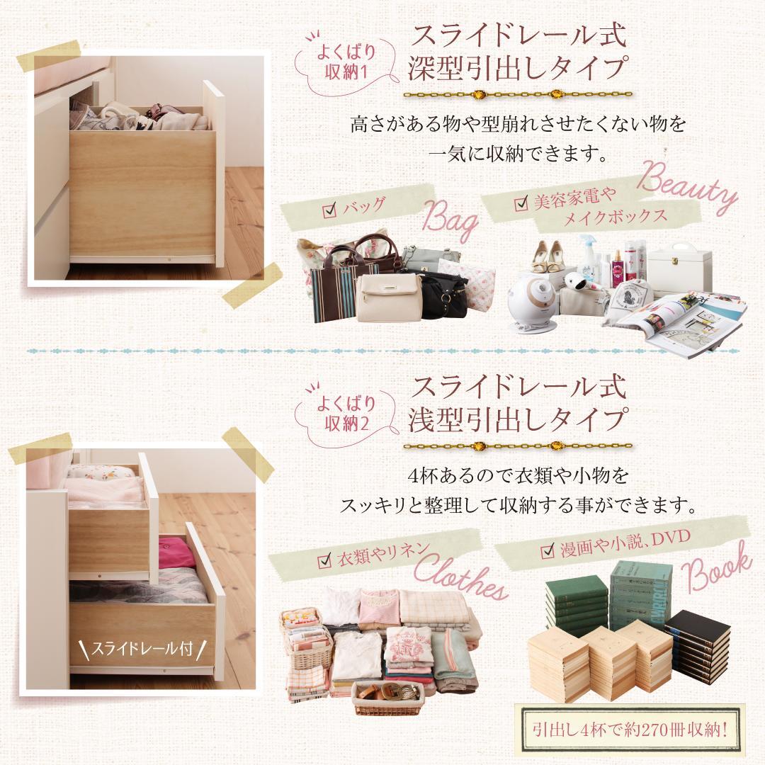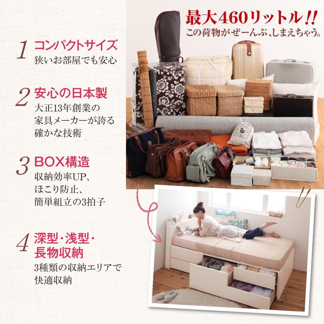 お客様組立 棚・コンセント付き_大容量コンパクトチェストベッド 薄型スタンダードボンネルコイルマットレス付き セミシングル ショート丈
