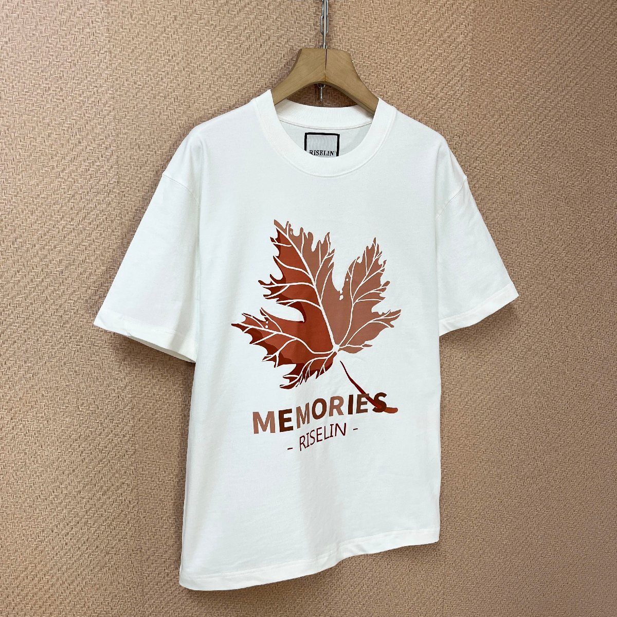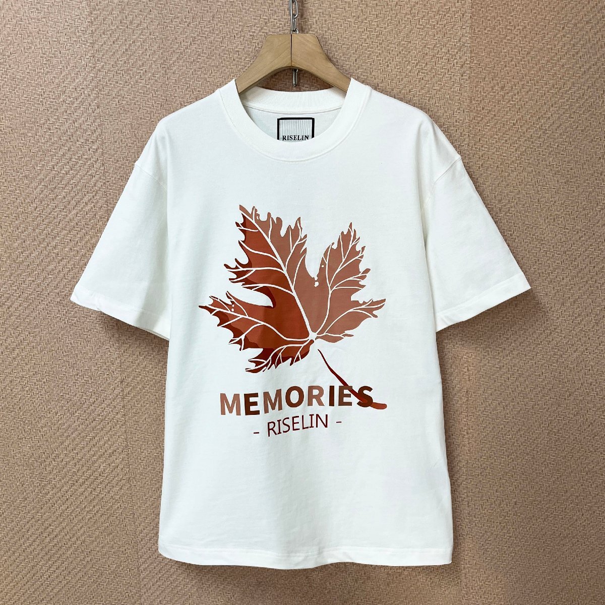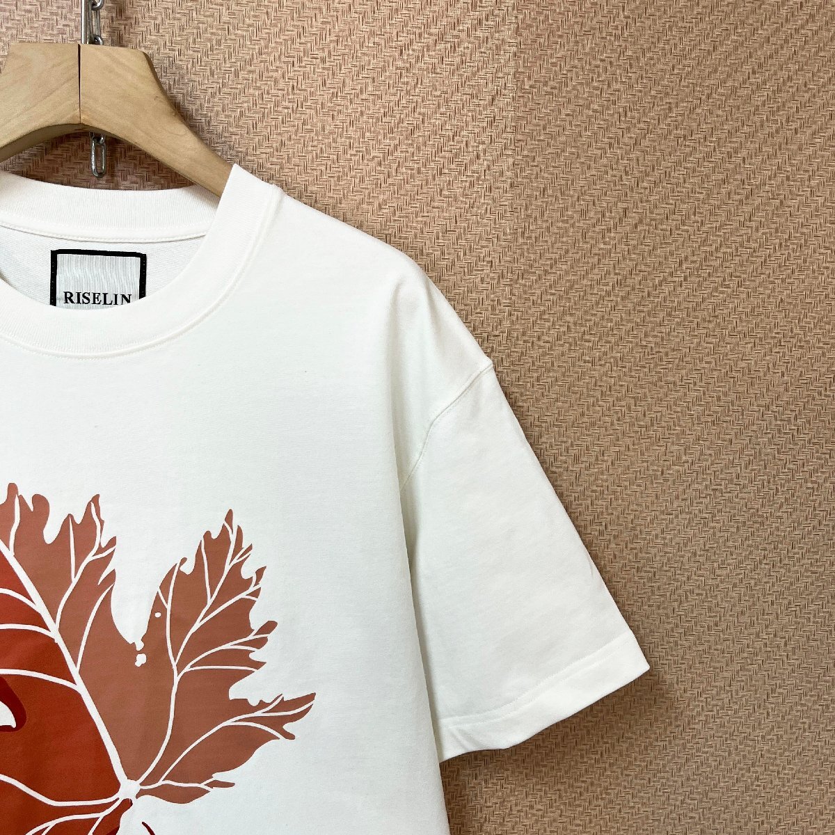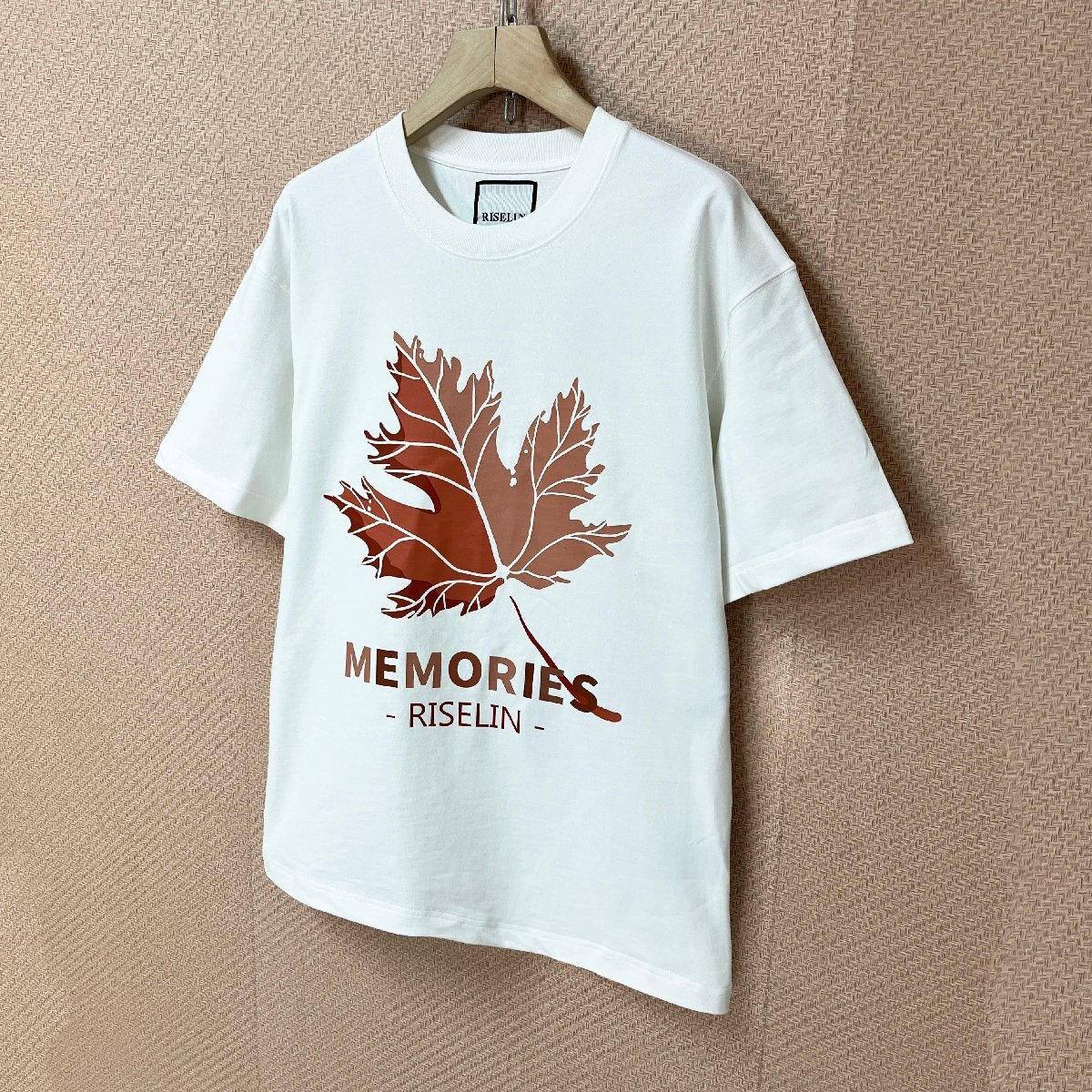 定番ヨーロッパ製※定価2万◆ブルガリア発※RISELIN 半袖 Tシャツ 綿100% 通気 紅葉柄 プルオーバー スウェット トップス 夏 定番 M/46サイズ