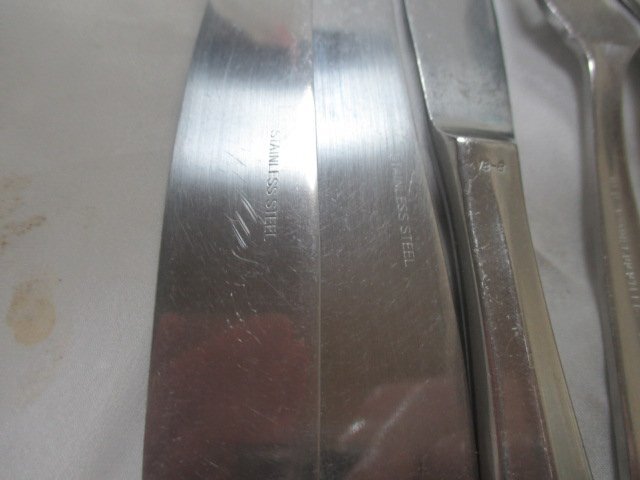 ミートナイフ:2本 ミートナイフ(ギザギザ付き):2本 フィッシュナイフ:2本 フォーク 大:2本 小:2本 スープスプーン:2本 シチュースプーン:2本 デザートスプーン:2本 グレープフルーツスプーン:2本 ティー&コーヒースプーン:2本 |