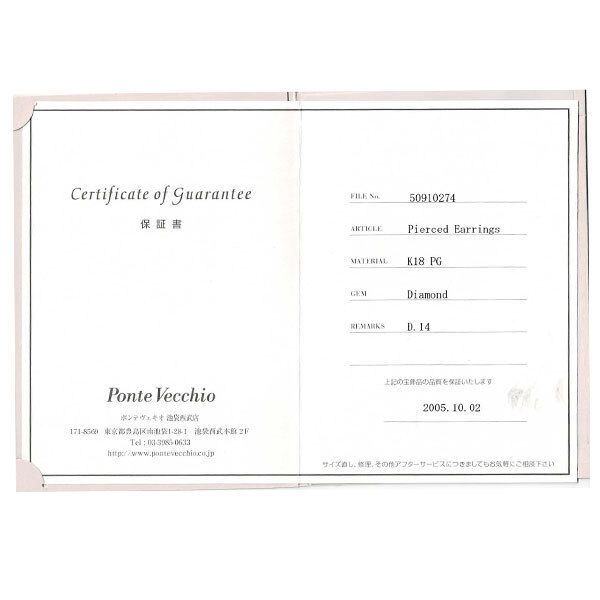 | ポンテヴェキオ K18PG ダイヤモンド ピアス 0.14ct ハート | |