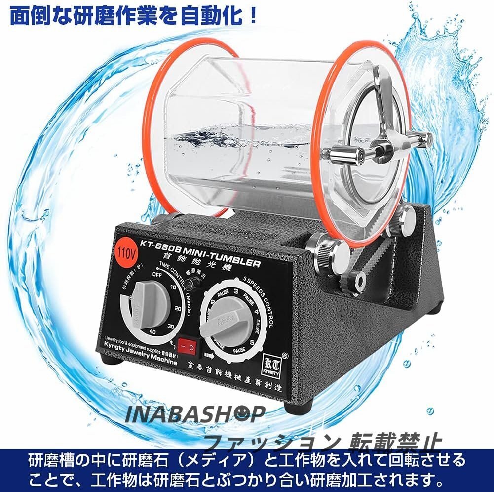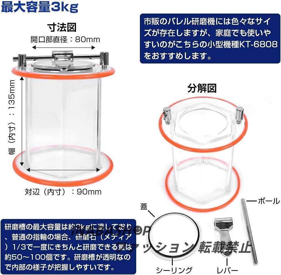 EC Tool バレル研磨機 回転バレル研磨機 KT6808 最大容量3kg タイマー機能付 スピード5段調整可能 研磨ボール付属110Vチェンジバレル研磨機