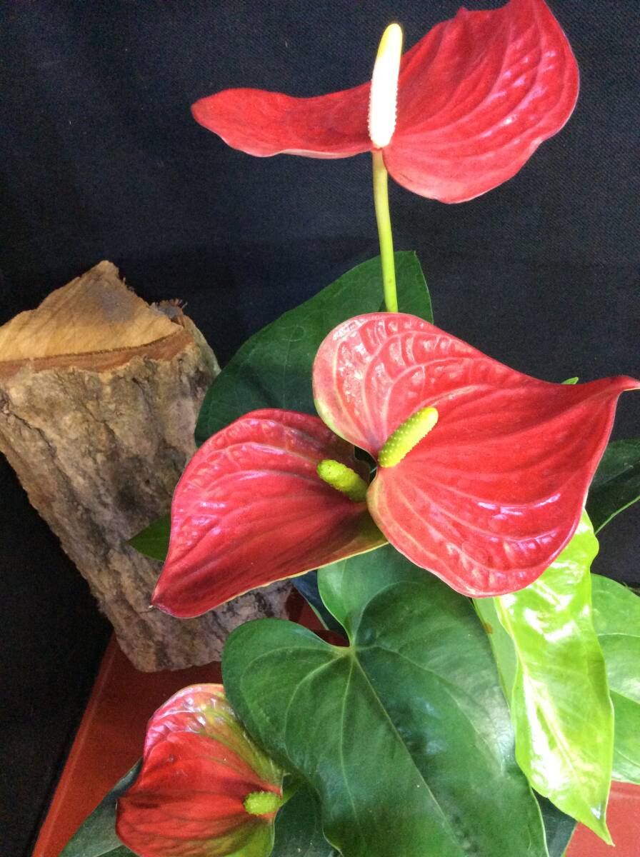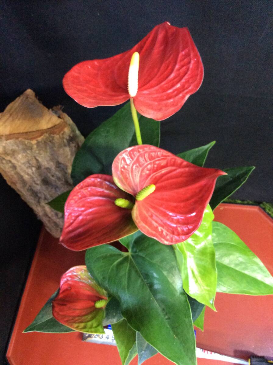 アンスリウム アンドレアナム (ナ)、レース越し明るい所。秋か春大きな鉢に植え替えて下さい。冬は水をやらず暖かい所に置いてください。て
