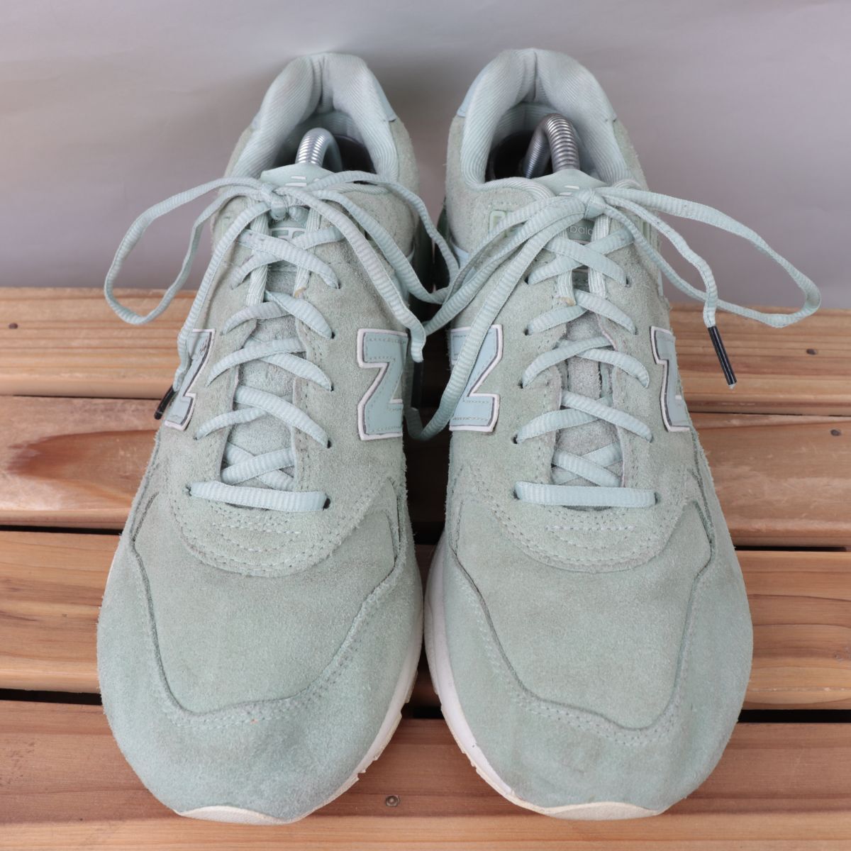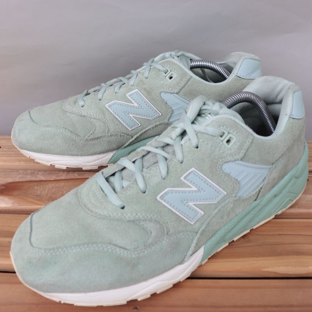 z1325【580】ニューバランス US9.5 27.5cm/緑 グリーン ライトグリーン ミント newbalance メンズ スニーカー 中古