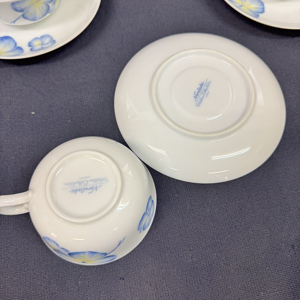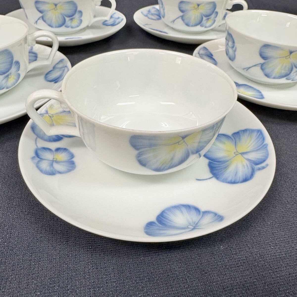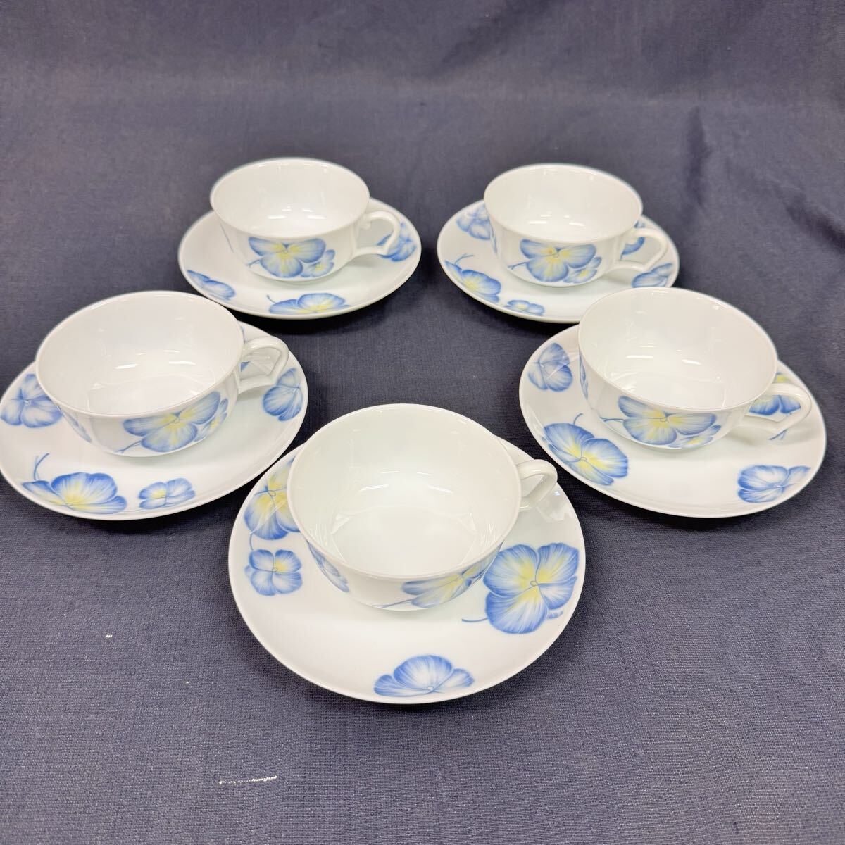 ◆中古 Noritake/ノリタケ カップ&ソーサー 5客セット Studio Collection JAPAN ブルー パンジー ティーセット 洋食器 265-2