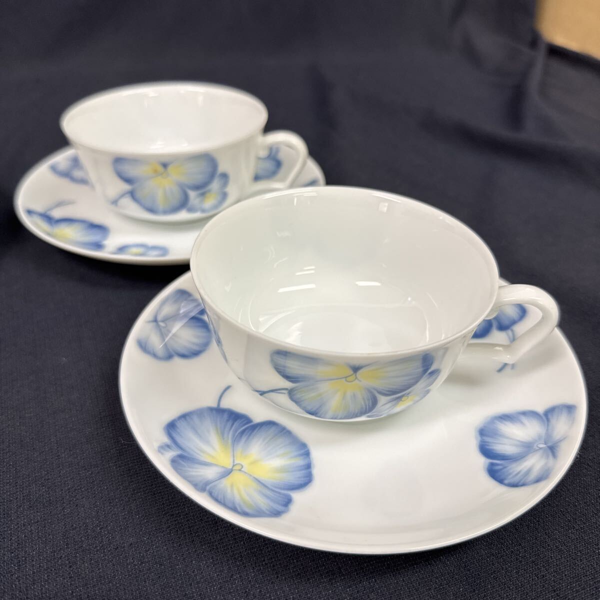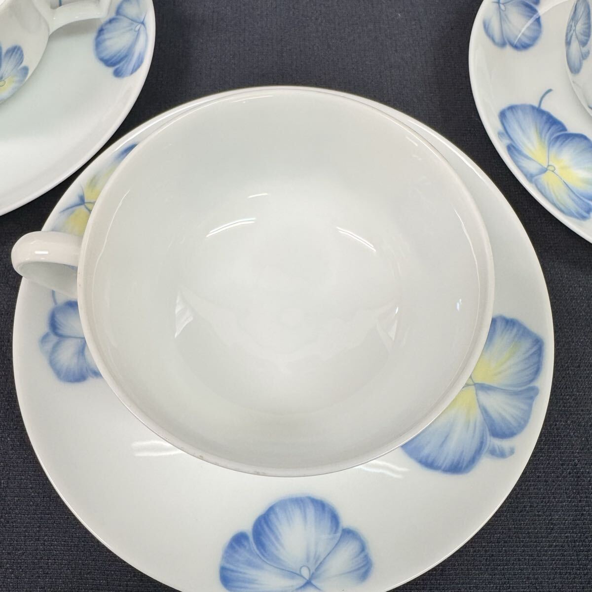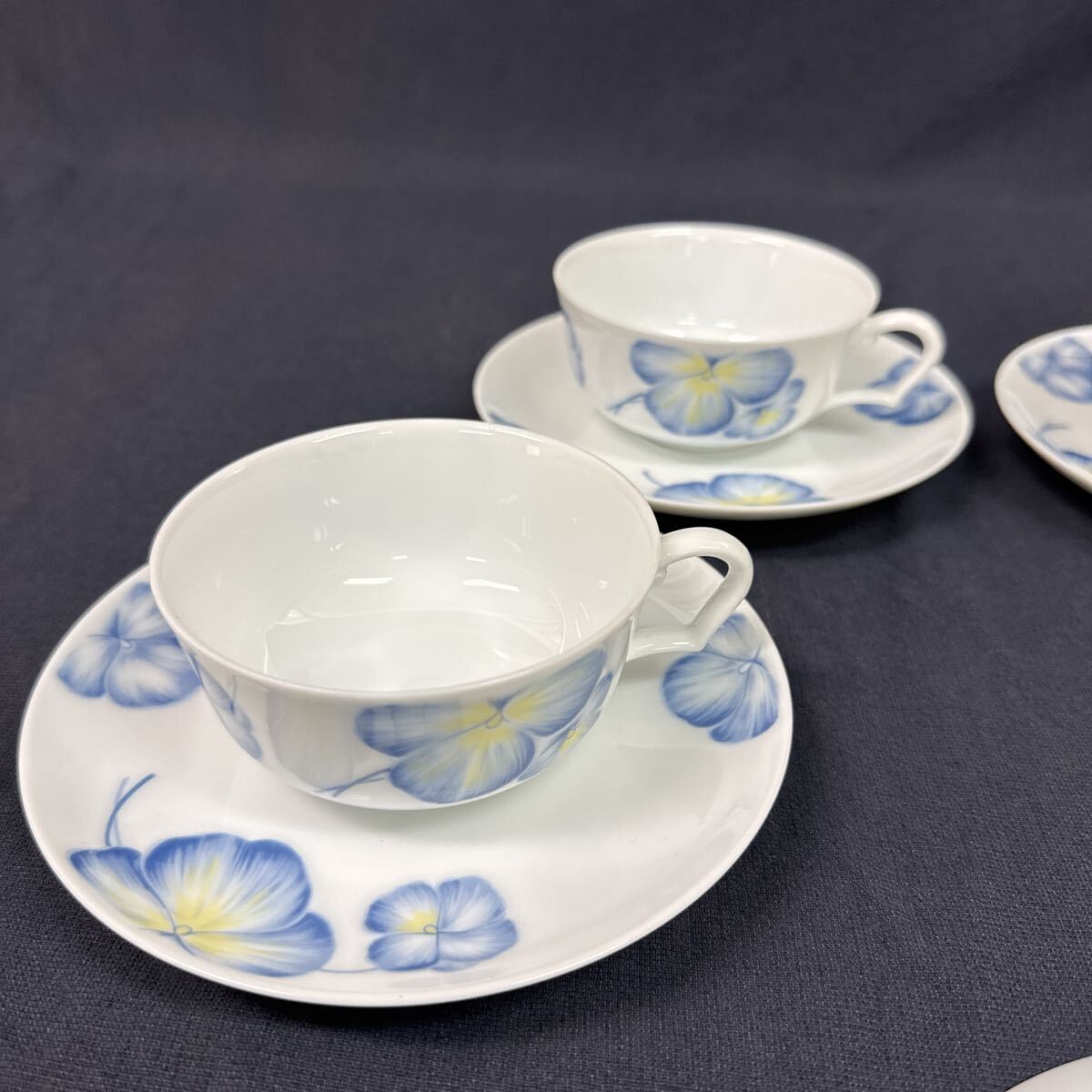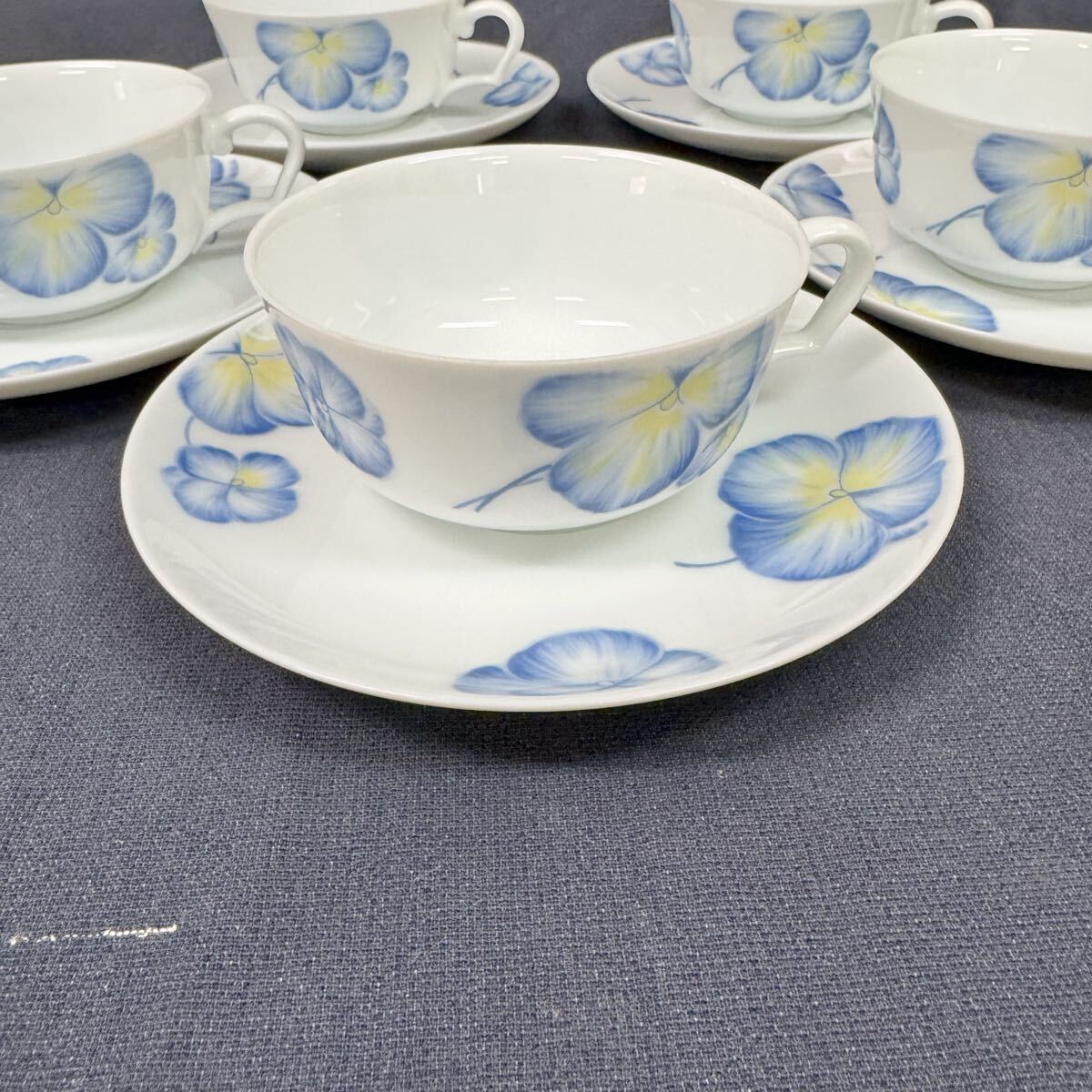 ◆中古 Noritake/ノリタケ カップ&ソーサー 5客セット Studio Collection JAPAN ブルー パンジー ティーセット 洋食器 265-2
