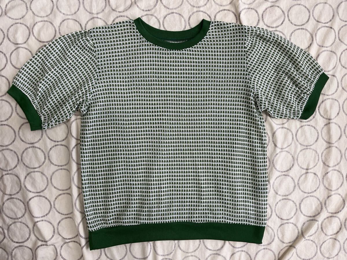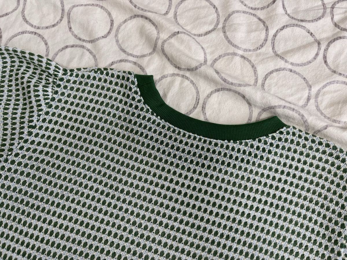 透かし編みがかわいいサマーニットレディース半袖カットソーです。