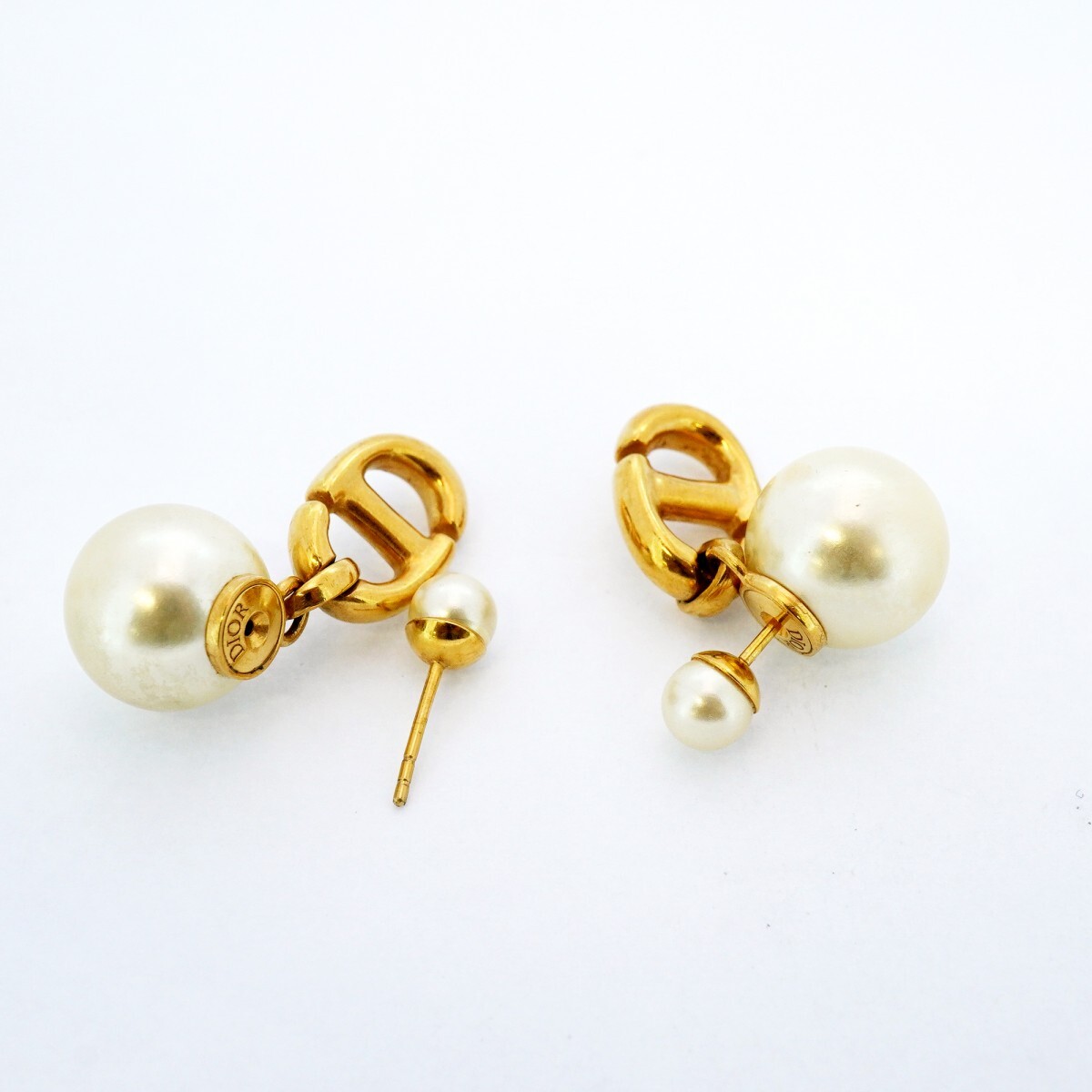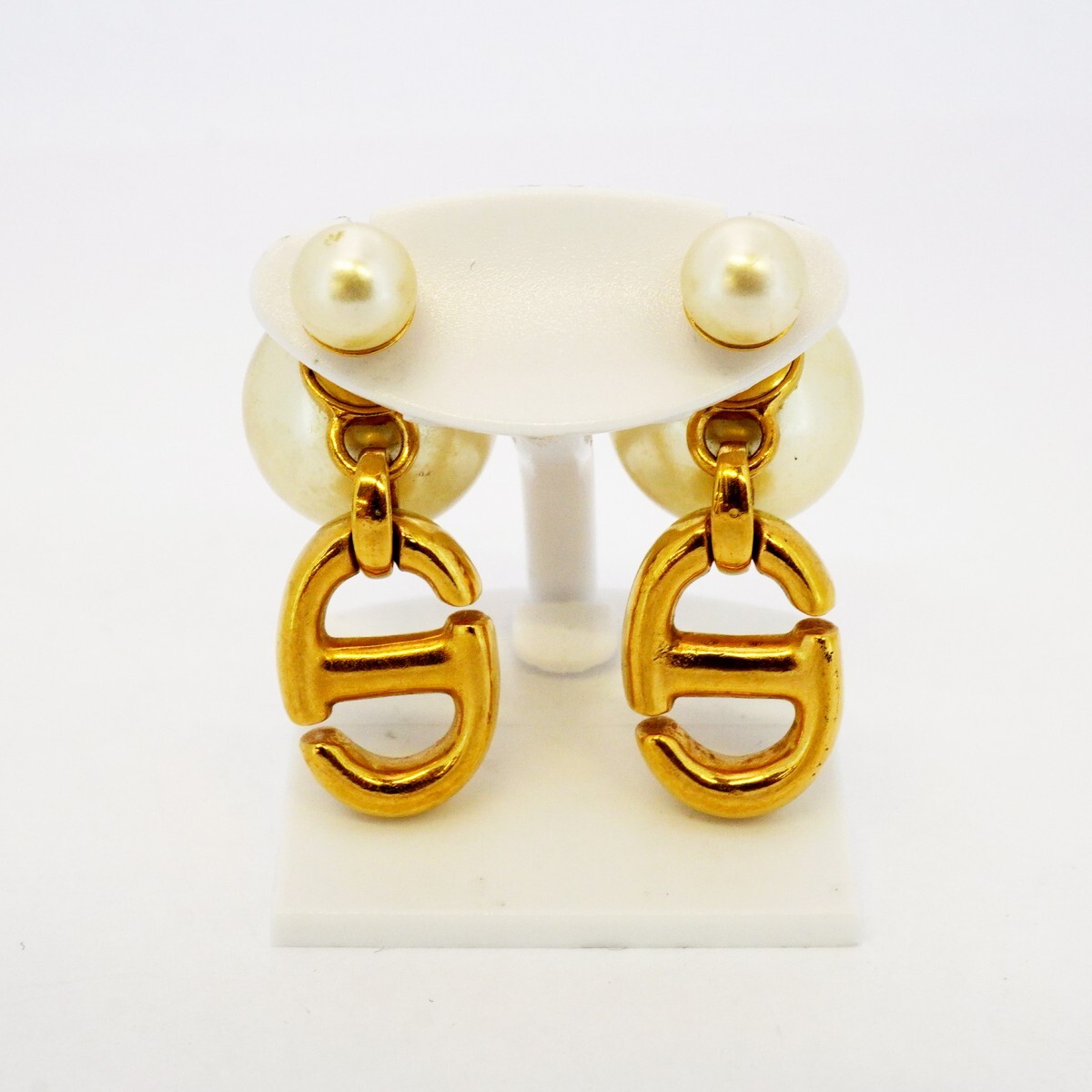 ★最終価格★SALE【5jgb0647】クリスチャンディオール ピアス CDロゴ GPメッキ フェイクパール ゴールド【中古】レディース