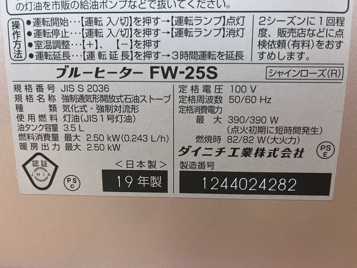ダイニチ ブルーヒーター 石油ファンヒーター 2019年製