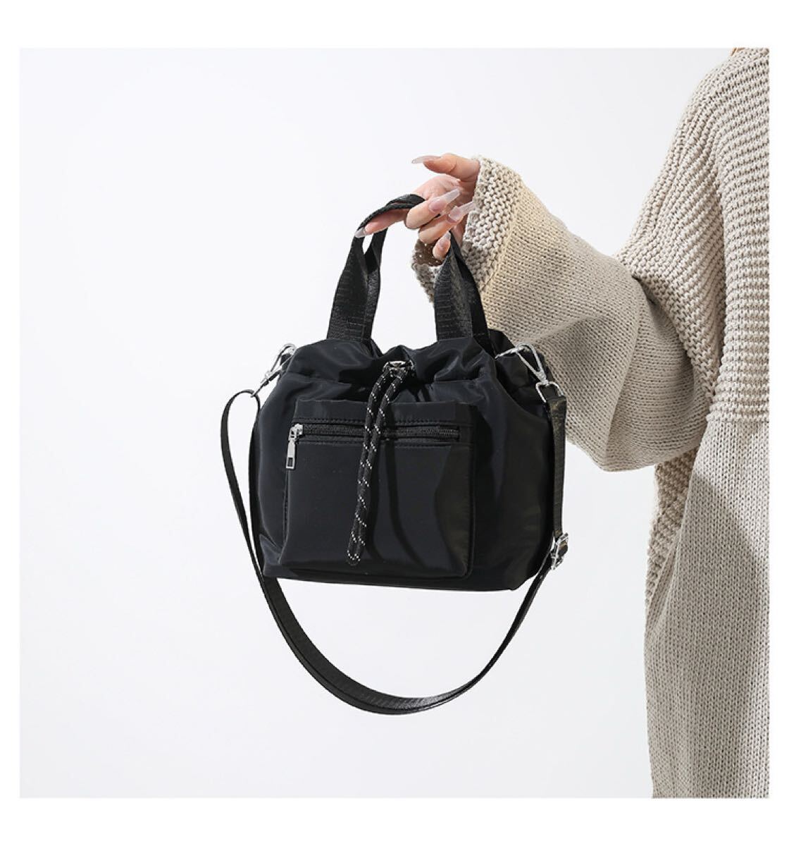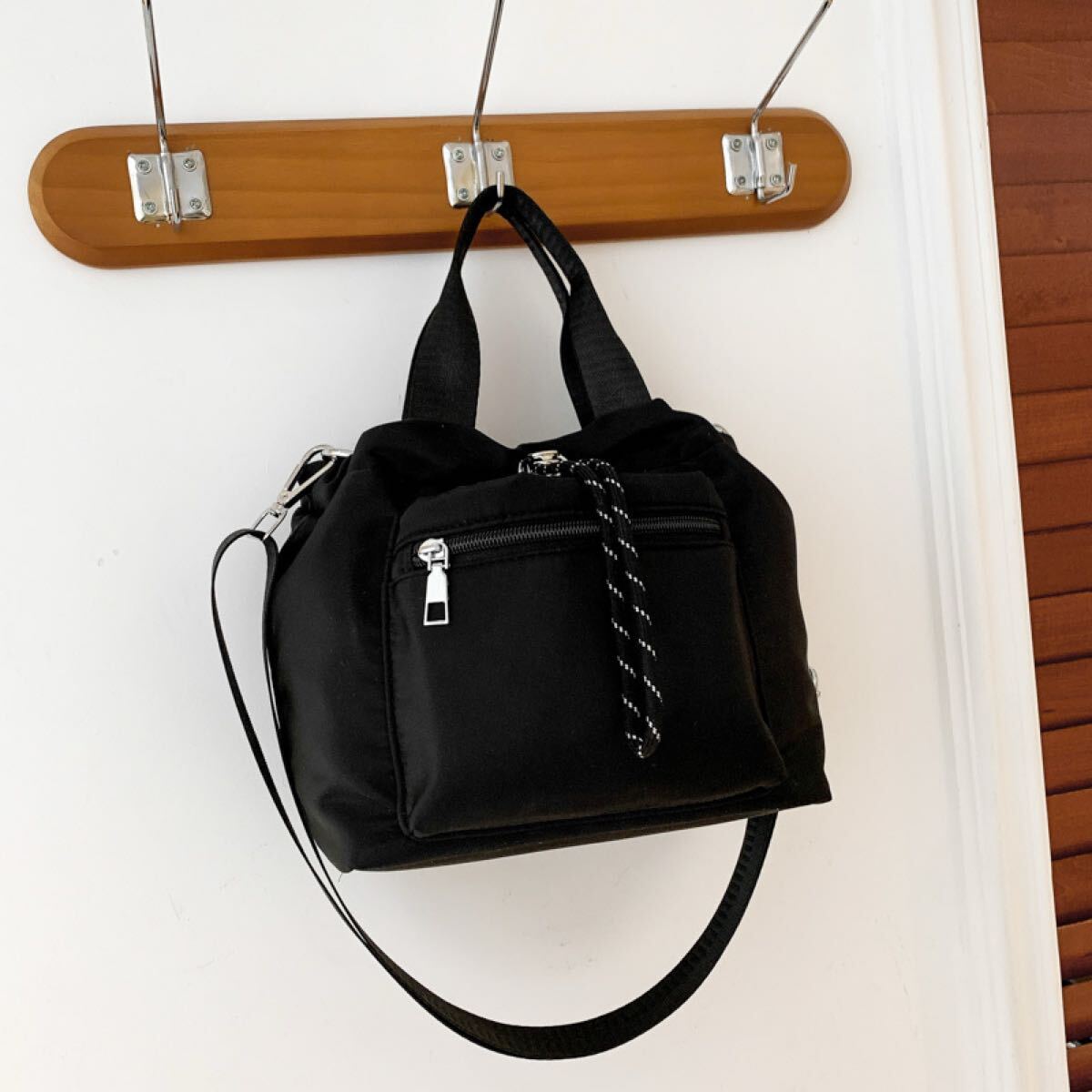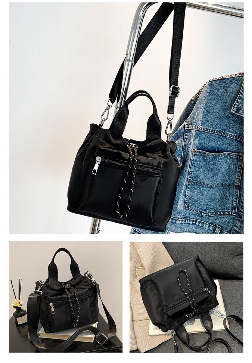 ショルダーバッグ 巾着トート 2way 肩掛け ナイロン ポシェット ハンドバッグ ブラック