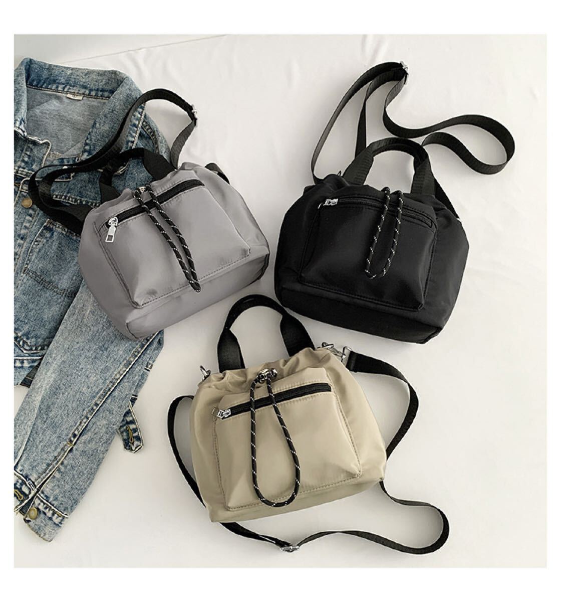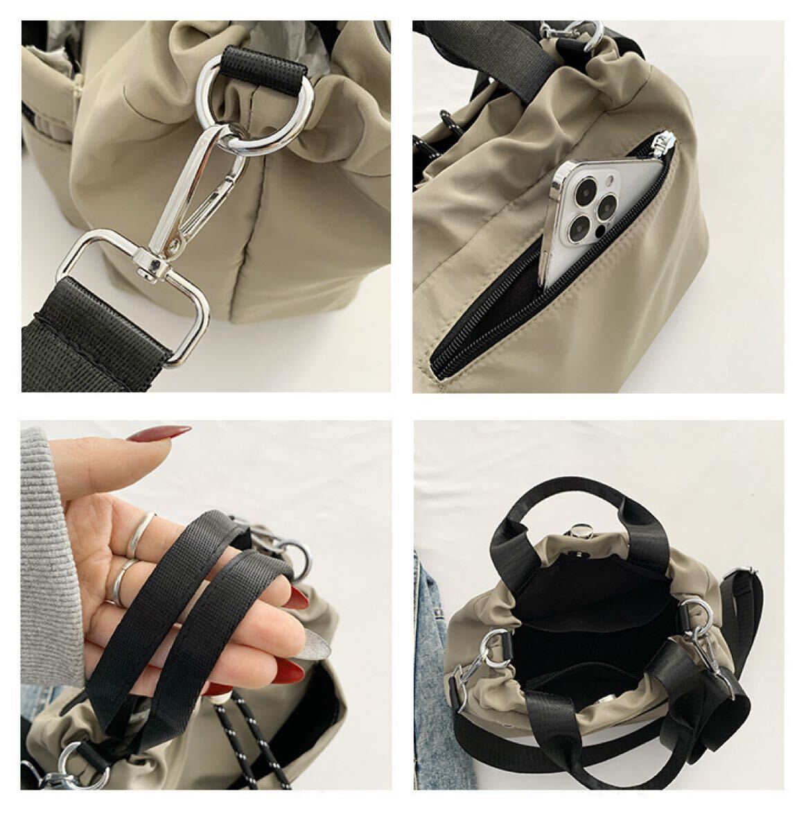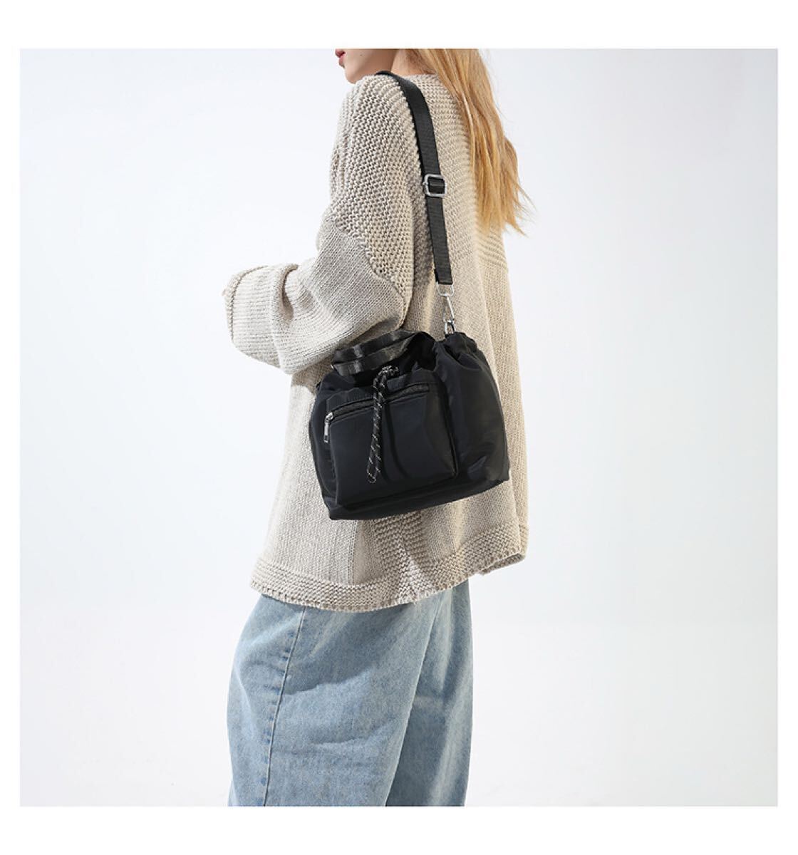 ショルダーバッグ 巾着トート 2way 肩掛け ナイロン ポシェット ハンドバッグ ブラック
