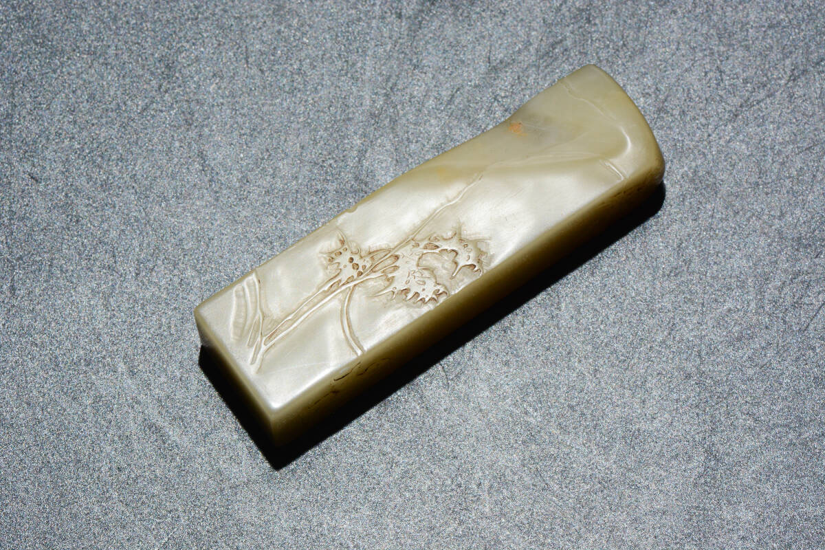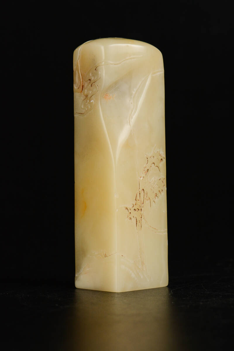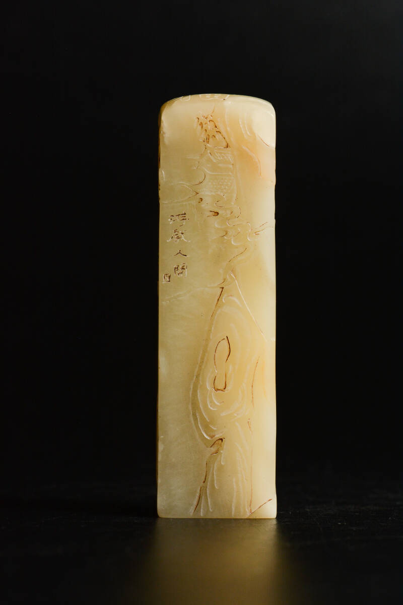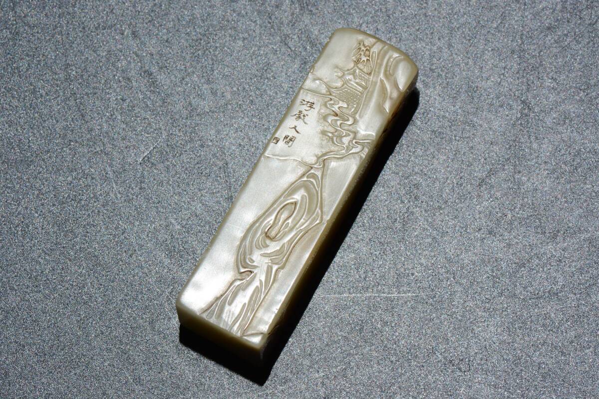 YH760 山水人物文 古印材 印鑑 在銘 篆刻 寿山石 水晶 メノウ 玉石 旧蔵 書道具 骨董 古董 古美術