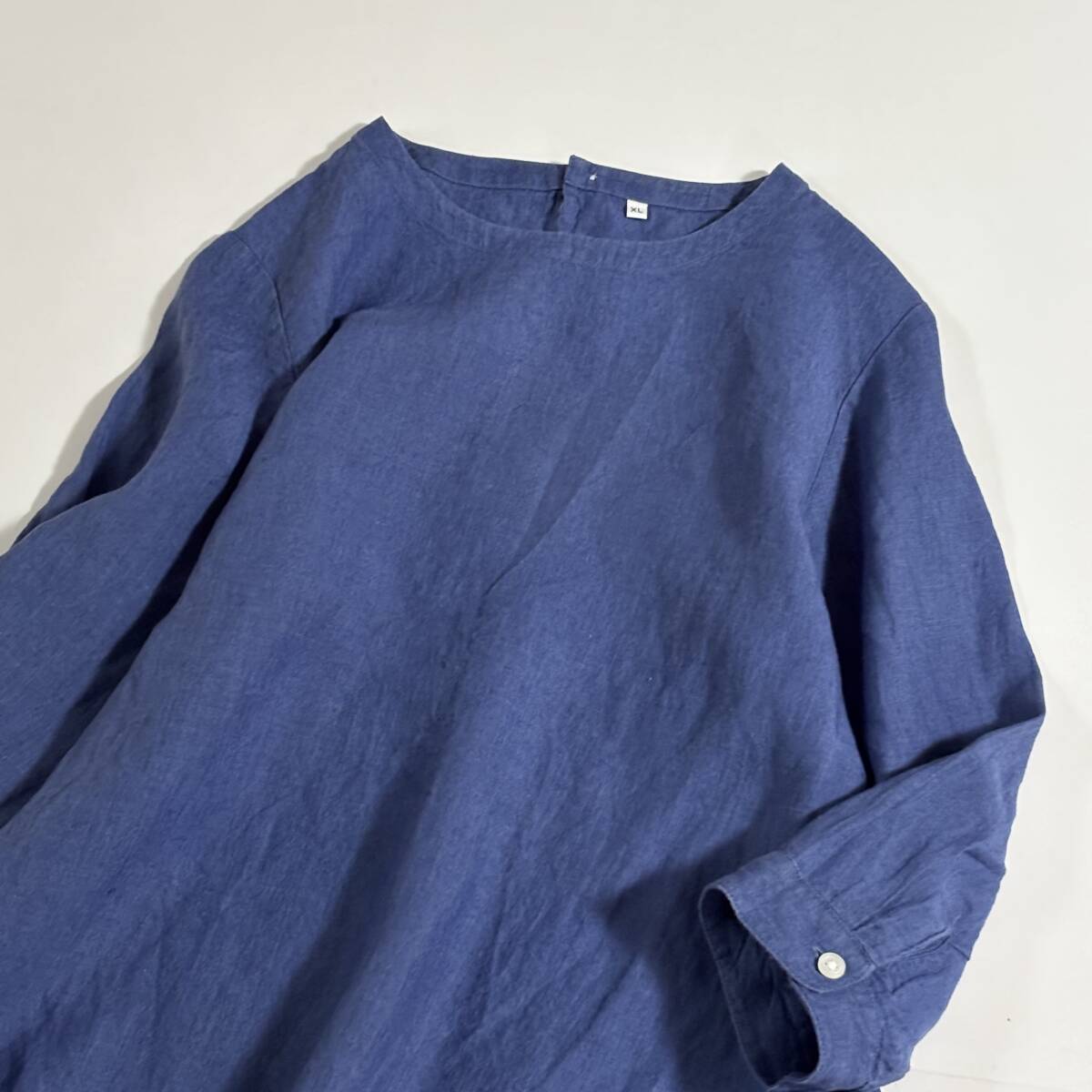 無印良品 大きいサイズXL // 麻・リネン100 紺色 プルオーバーブラウス ①