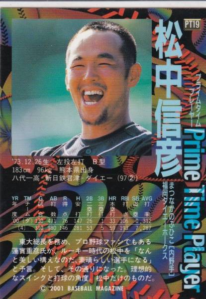 ●2001BBM【松中 信彦】 Prime Time Player 後期版 PT19:Hawks R