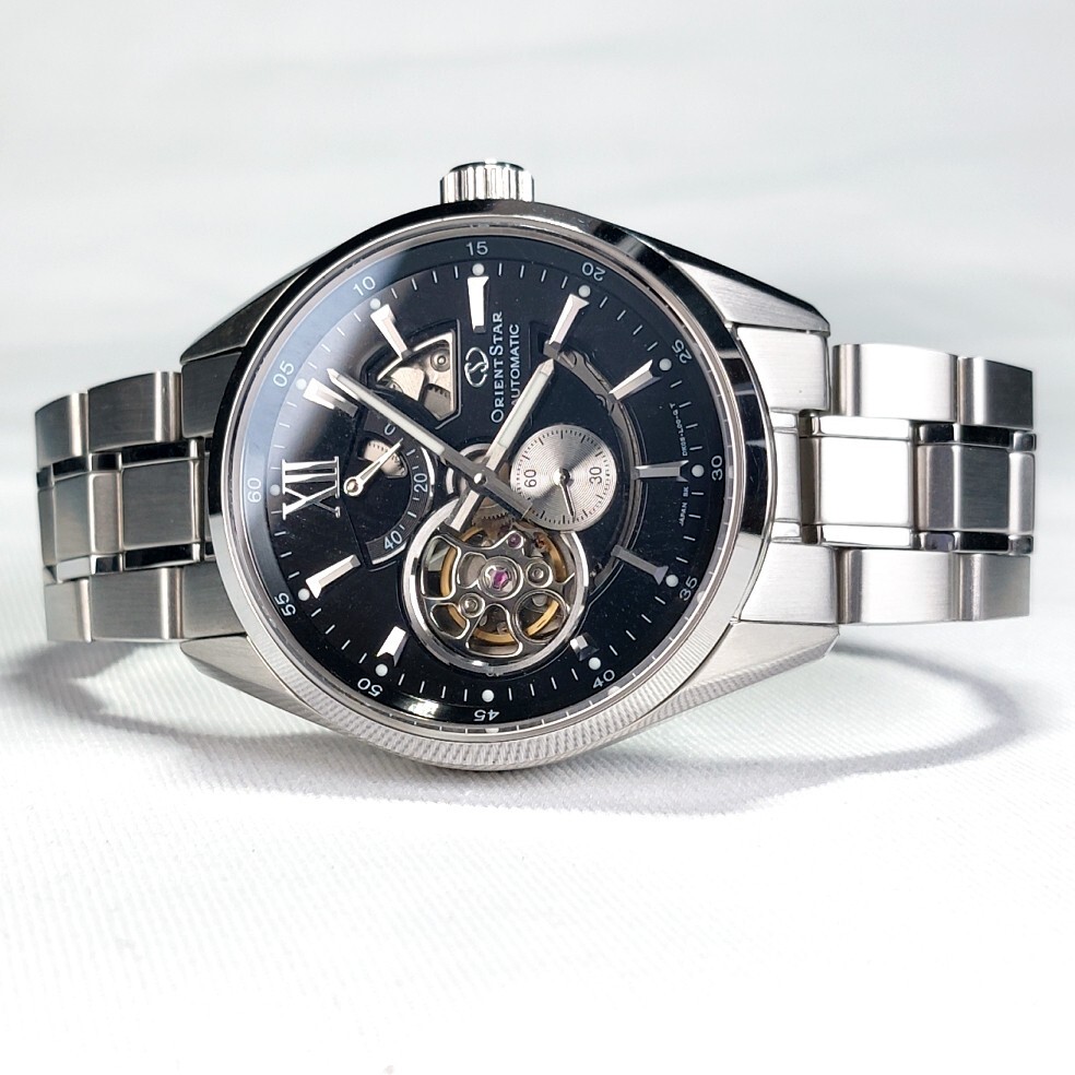 超美品 ORIENT STAR オリエントスター モダンスケルトン 腕時計 WZ0181DK 自動巻き 機械式 ラウンド パワーリザーブ ブラック 動作確認済み